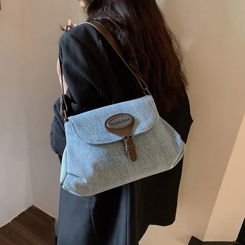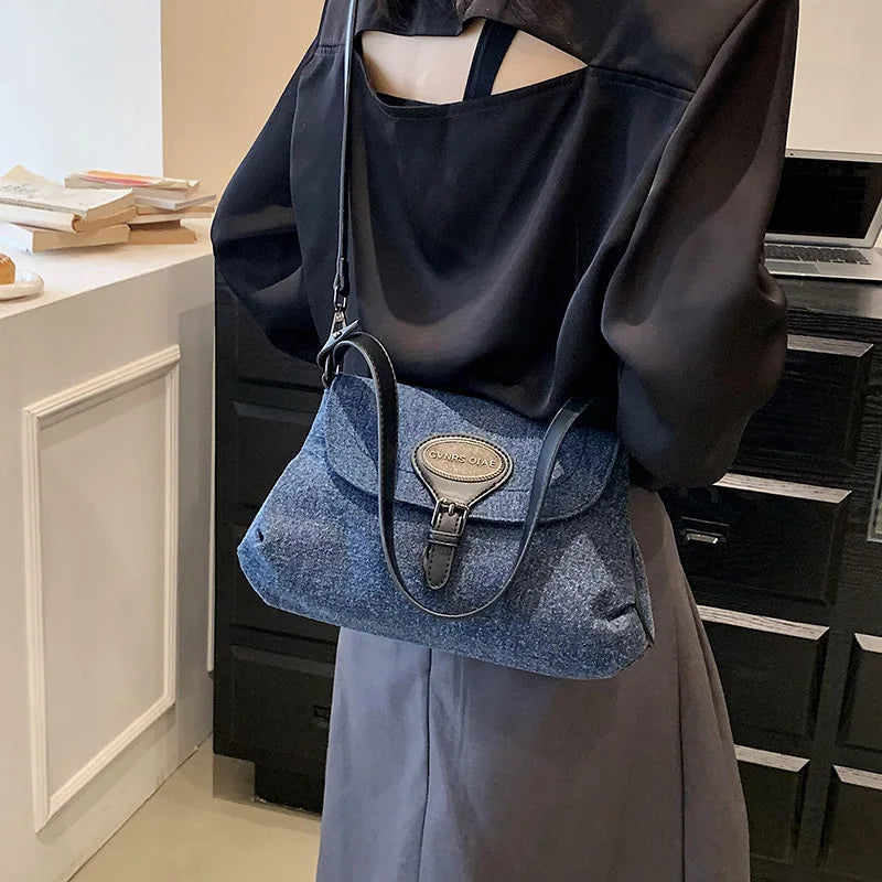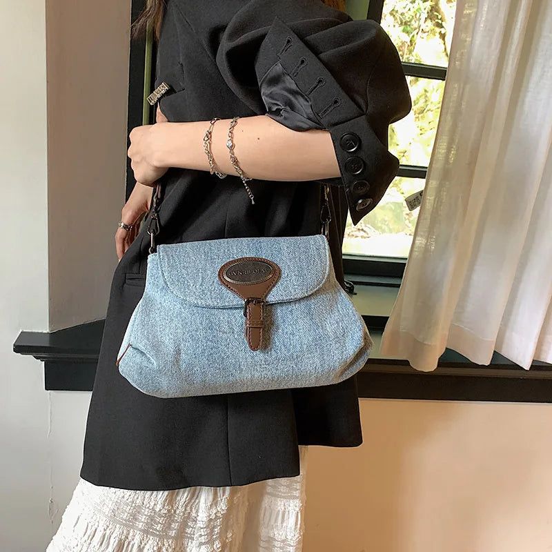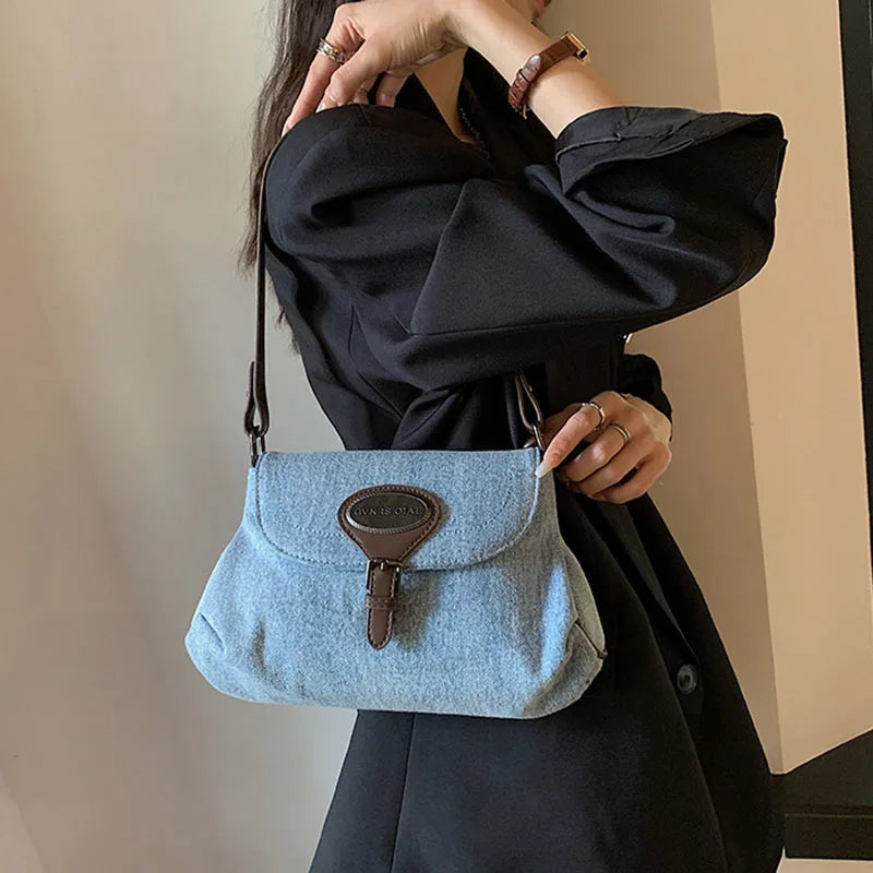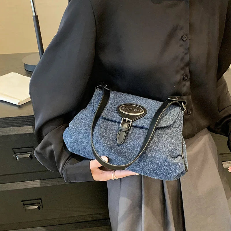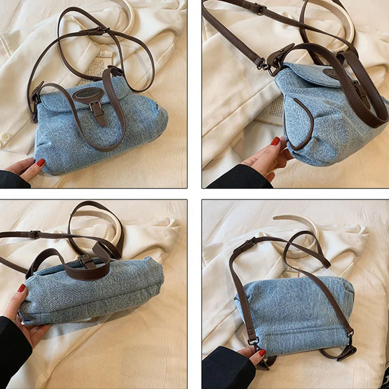 Textured Pleated Crossbody Bag Vintage Fashion Denim Single Shoulder Underarm Bags
