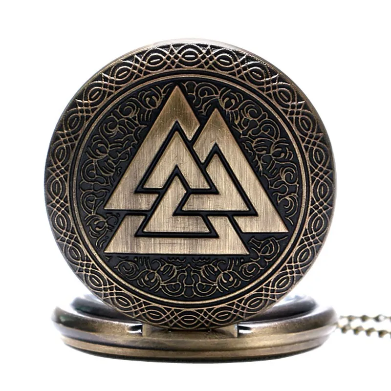 Pocket & Fob Watches-Three Interlocking Triangles Norse Mythology Antique Style Pocket Watch Full Hunter Women Men Analog Fob Watch Best Gift