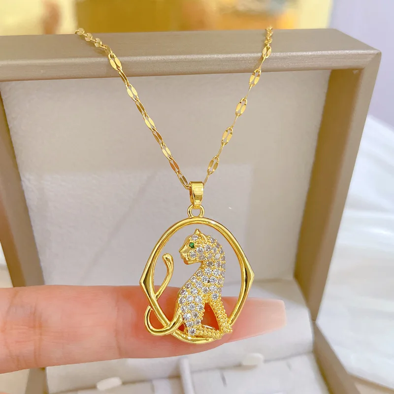 585 Gold Jewelry-316L Stainless Steel Tiger trapped In A Cage Of Beasts Pendant Necklace For Women Exaggerate Bohemian Jewelry