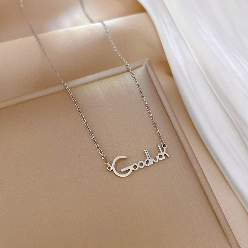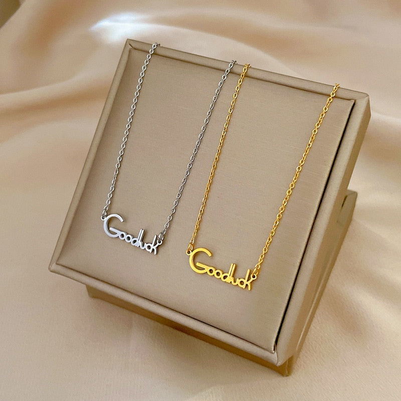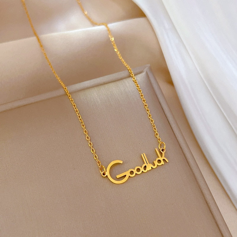 585 Gold Jewelry-Titanium Steel Exquisite Letter Goodluck Necklace For Women Personality Pendant Charm Jewelry Accessories Gifts