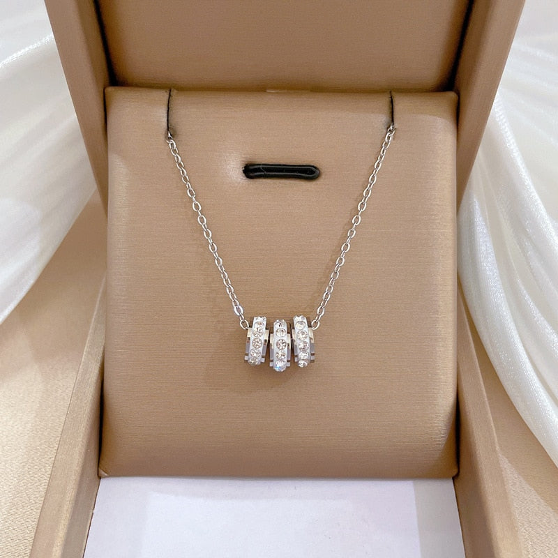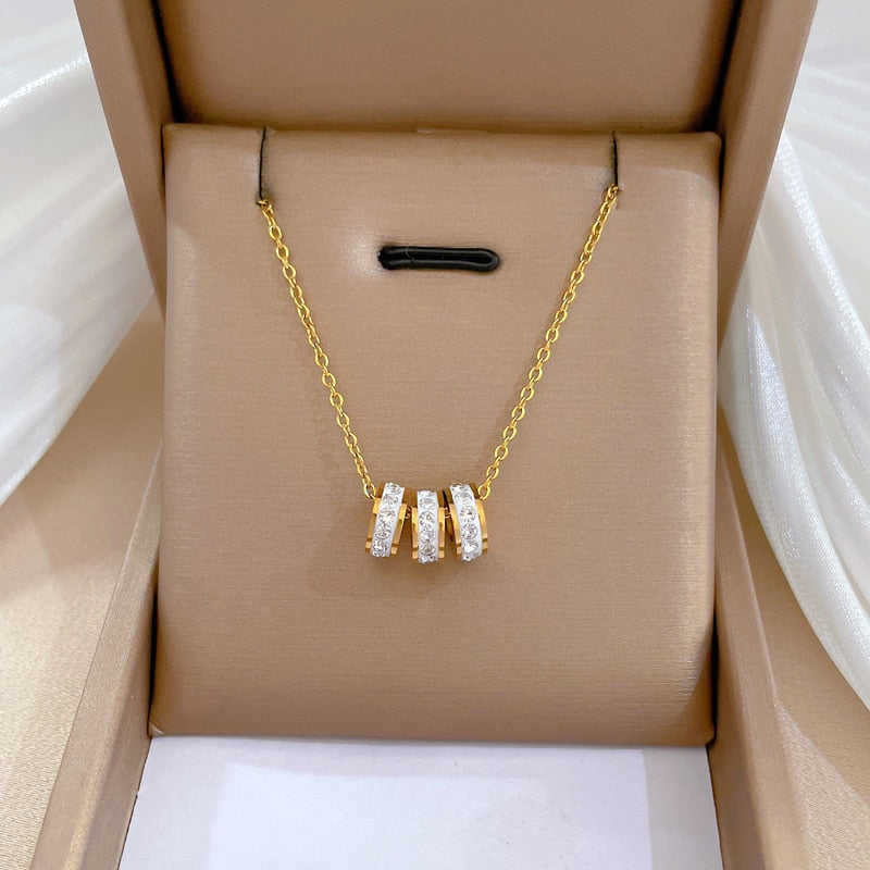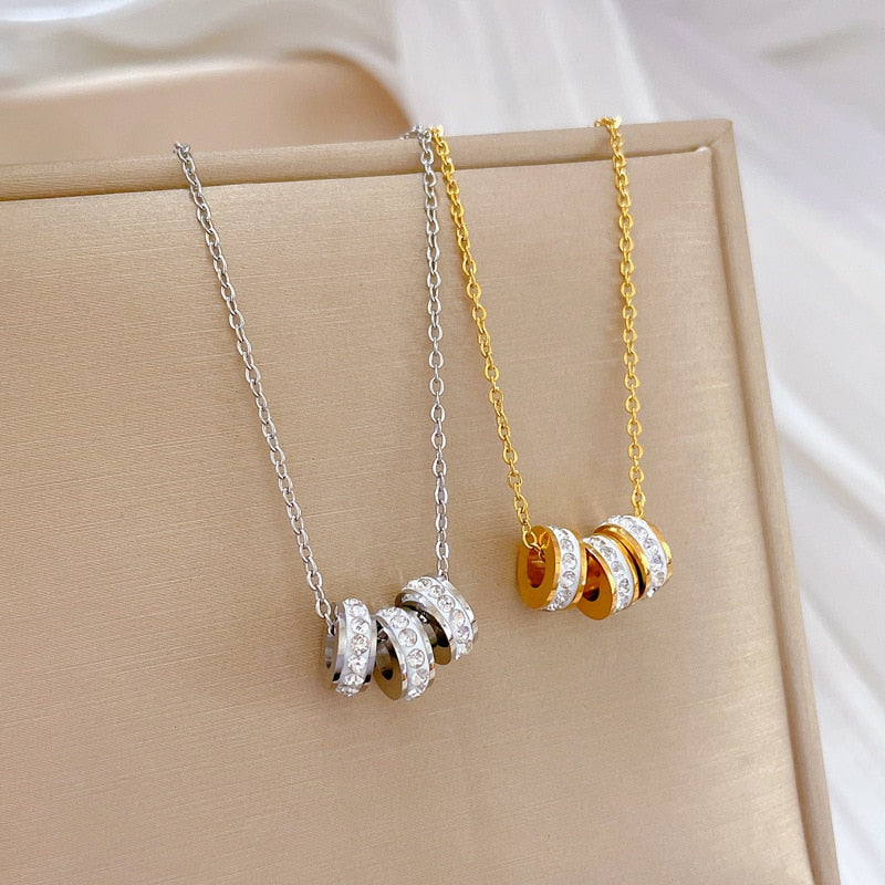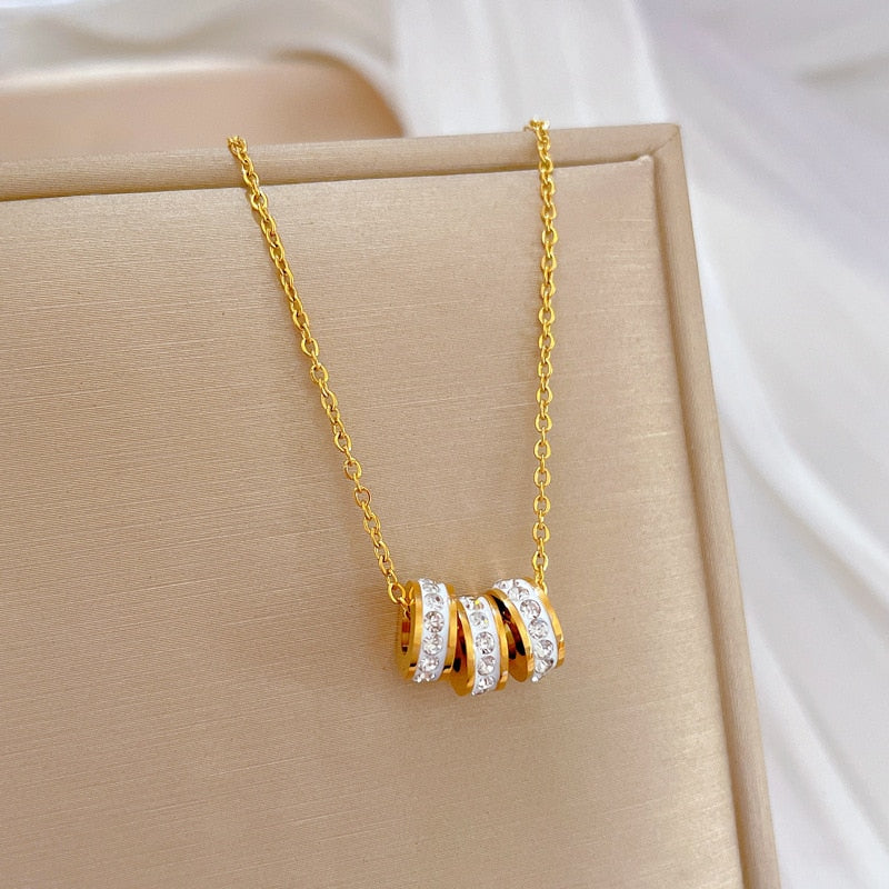 585 Gold Jewelry-Titanium Steel Luxury Small Pretty Waist Circle Necklace For Woman Fashion Korean Jewelry Sexy Charming Crystal Neckchain
