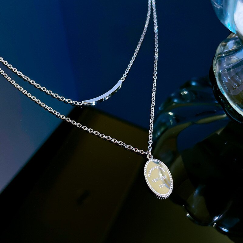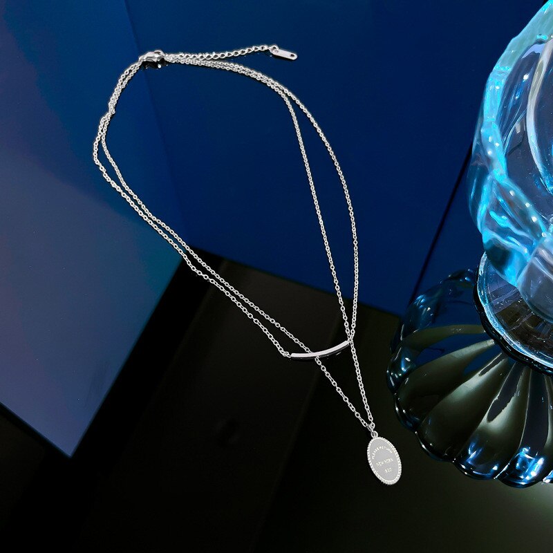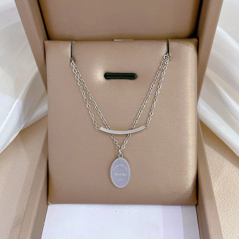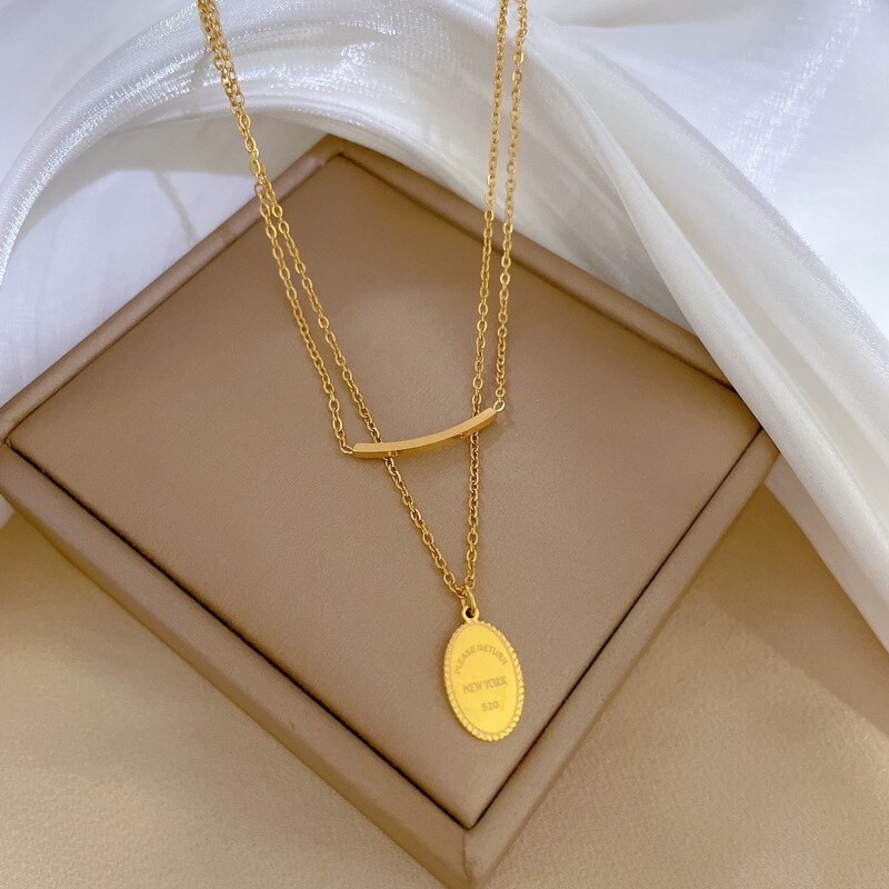 585 Gold Jewelry-Titanium Steel Simple Personality Double Layer Round Pendant necklace Jewelry Wholesale Necklaces For Women