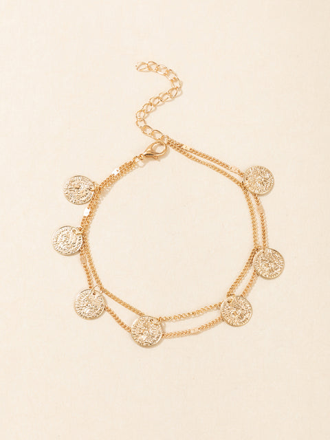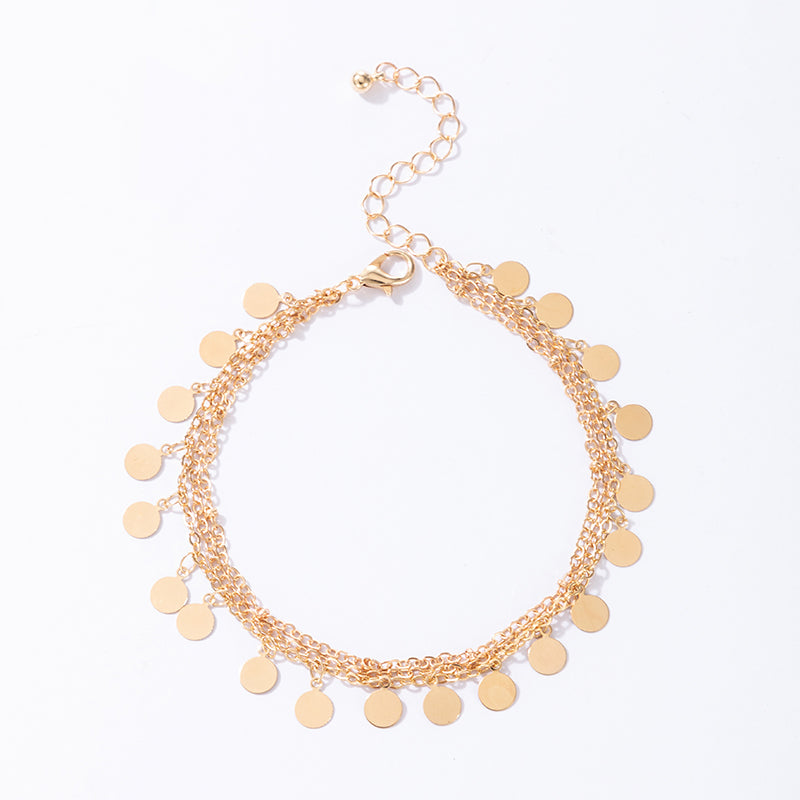 Anklets-Tocona Charms Gold Wafer Tassel Anklets for Women Luxury Wave Leaf Alloy Metal Adjustable Summer Jewelry Accessories