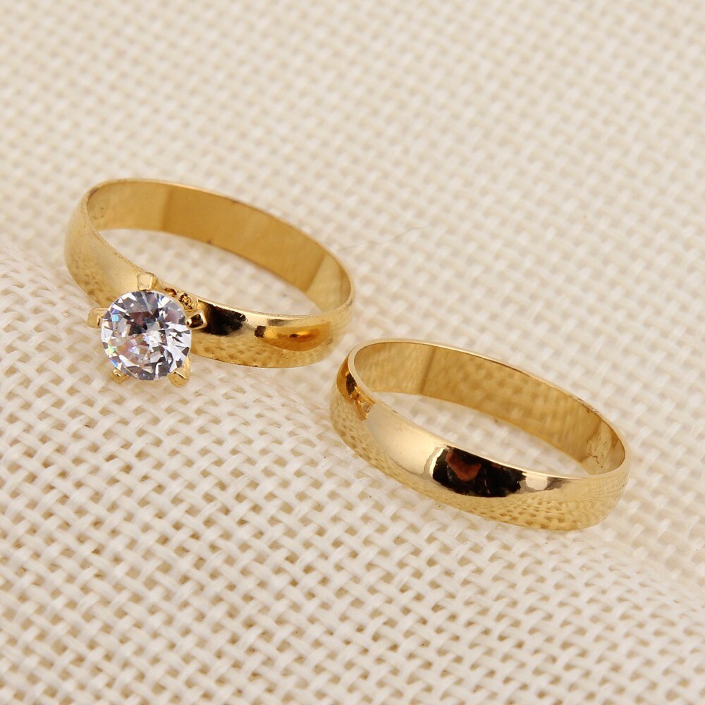 Afraic Jewelry-24k top quality gold cz Wedding bridal Rings For Couple Solid Lover's Engagement Anel crysta lrhinestone wome Inay fashion Jewelry