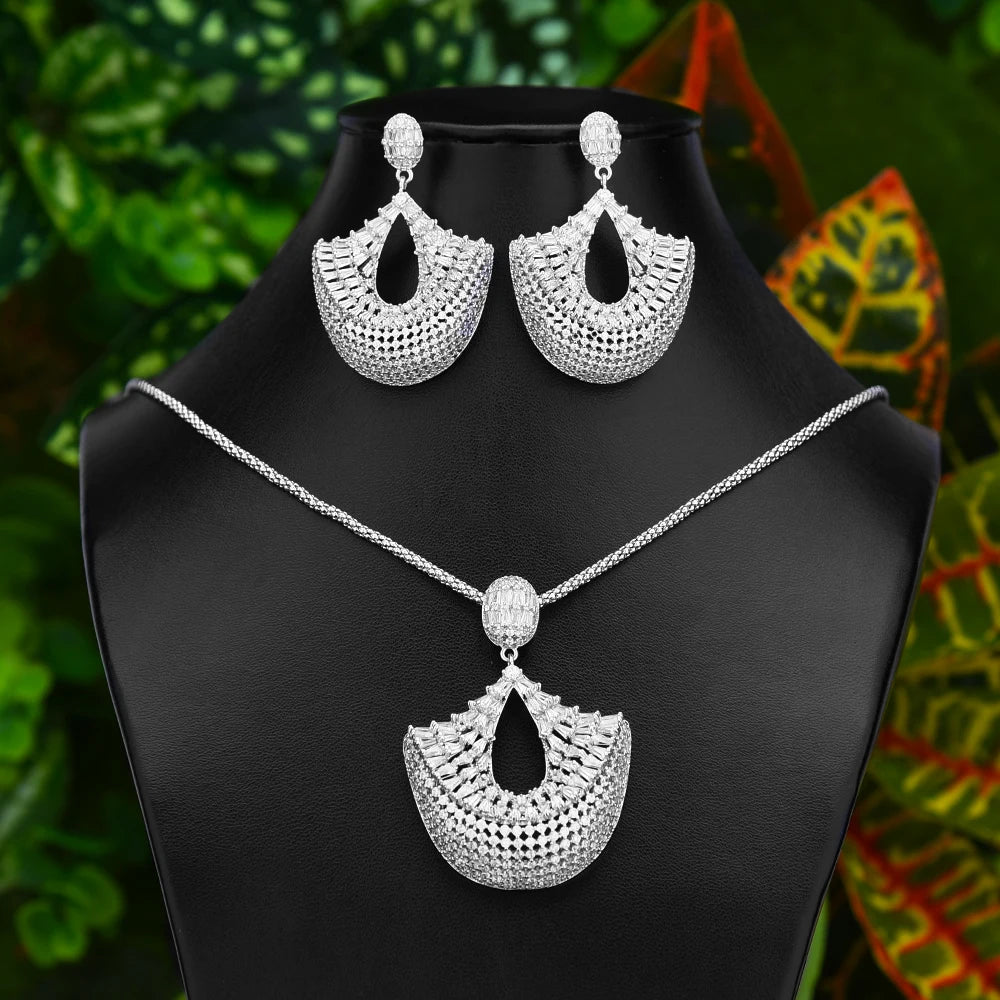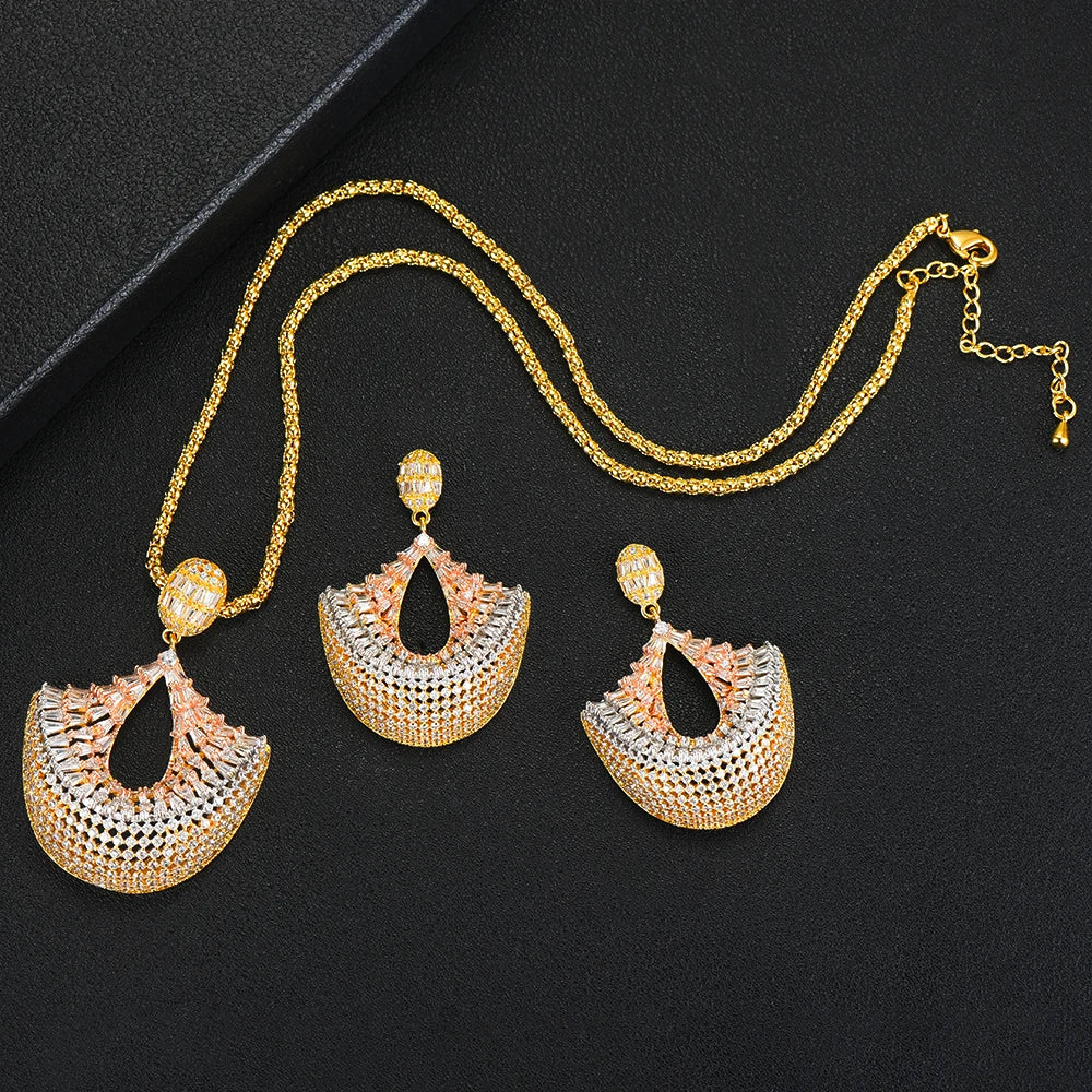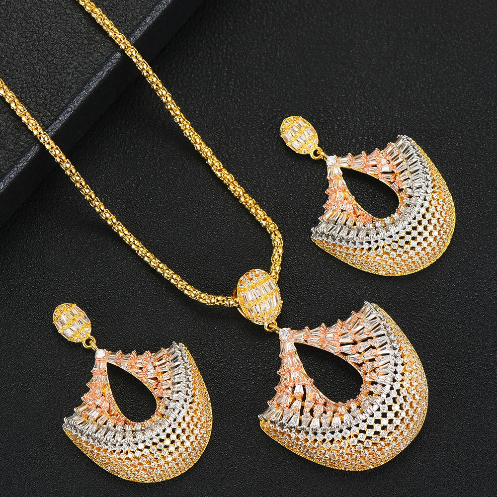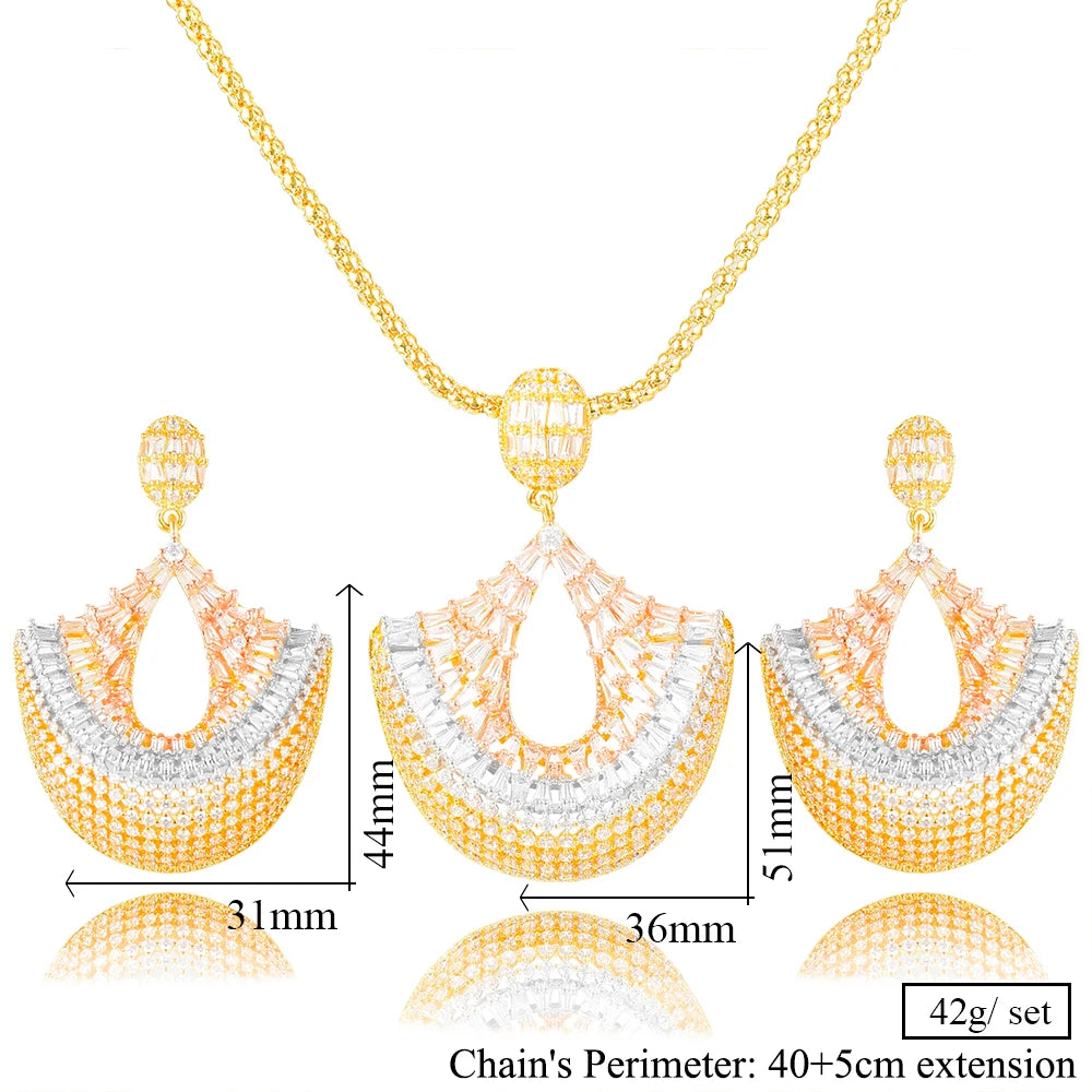 Trend 2PCS Fashion Luxury Dubai Bridal Wedding Charms Big Pendant Earrings Necklace Jewelry Set Super CZ New Design Jewelry