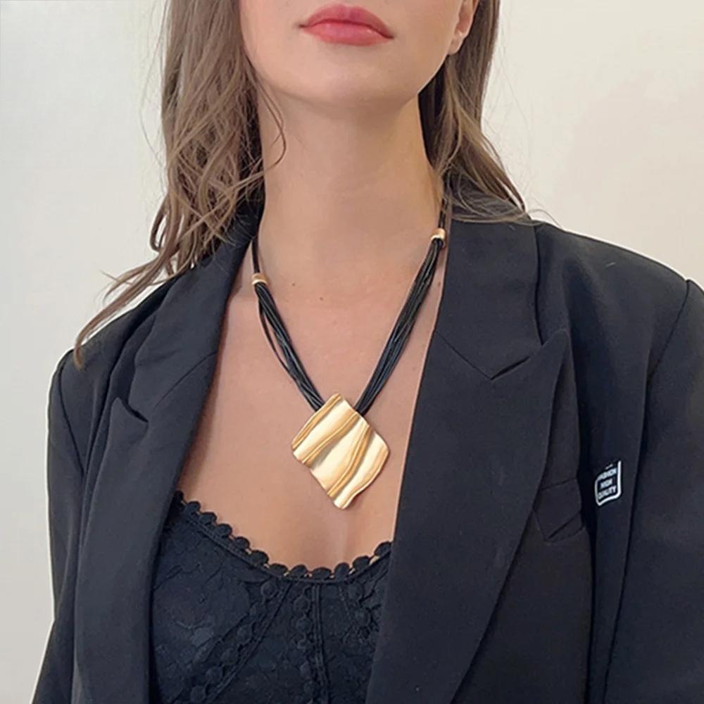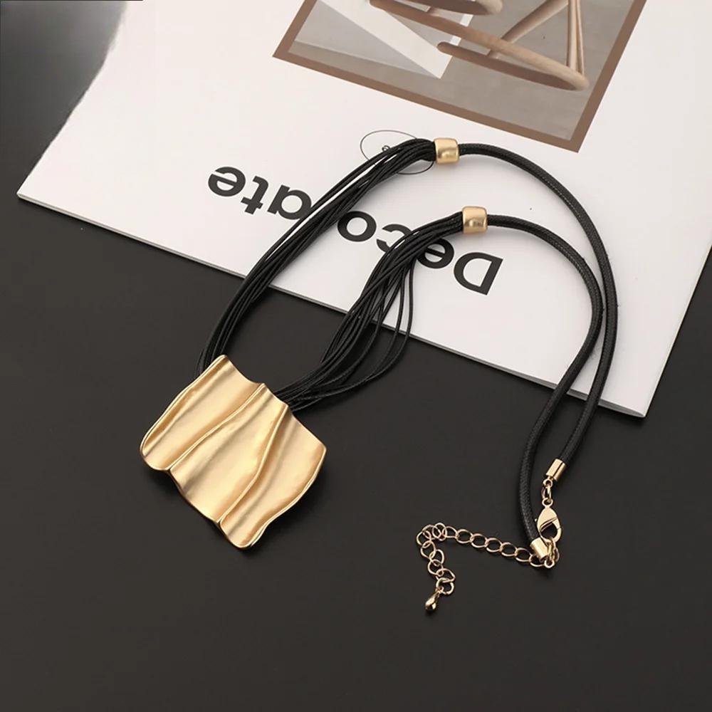 Trend Gold Color Geometric Uneven Suspension Pendants Korean Fashion Square Necklace Modern Jewelry for Women Gothic Accessories