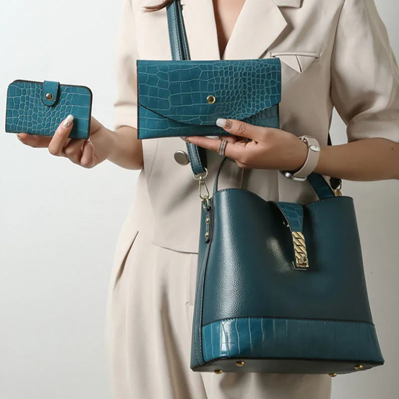 Trend Women's Crocodile Embossed Bucket Tote Bag Female Business Classic Leather Shoulder Top-Handle Messenger Handbags