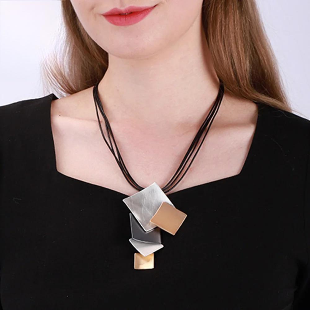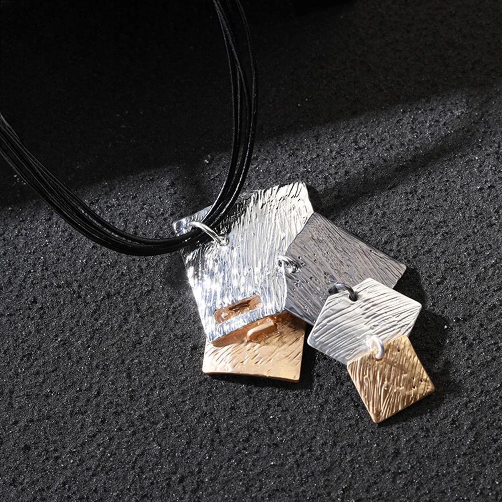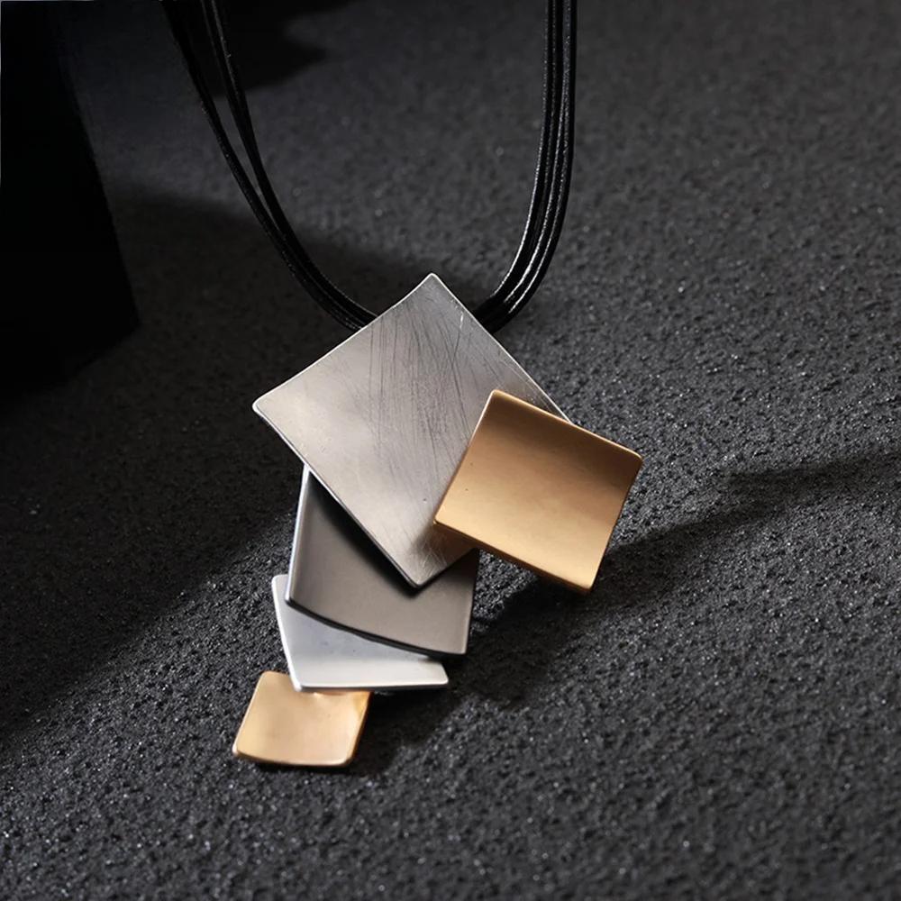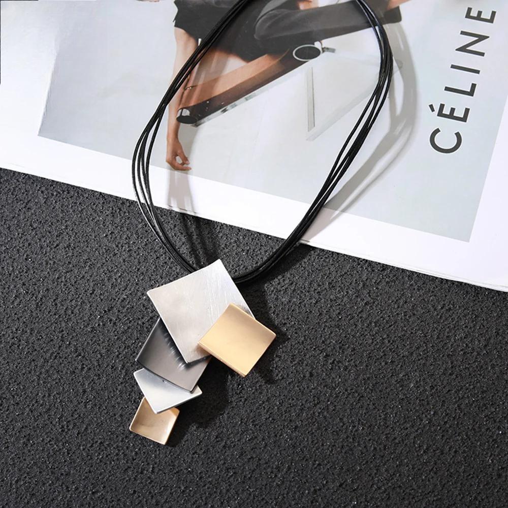 Trending Geometric Square Pendant Necklace Collares Fashion Vintage Long Leather Chains Accessories Goth Jewelry for Women