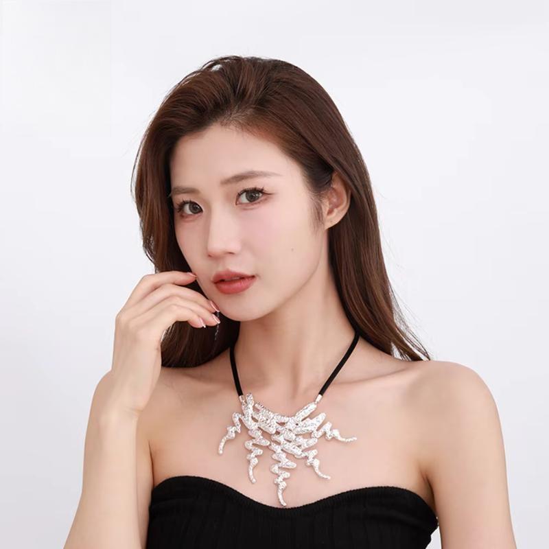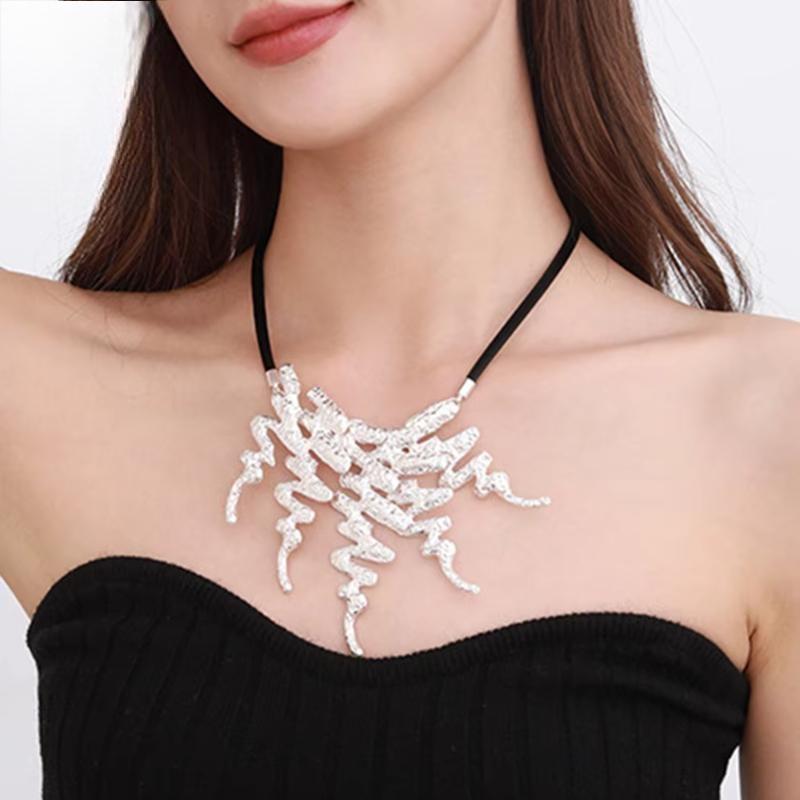 Trending Irregular Geometric Suspension Neck Chokers for Women 2 Silver Color Gothic Pendants Statement Jewelry Accessories