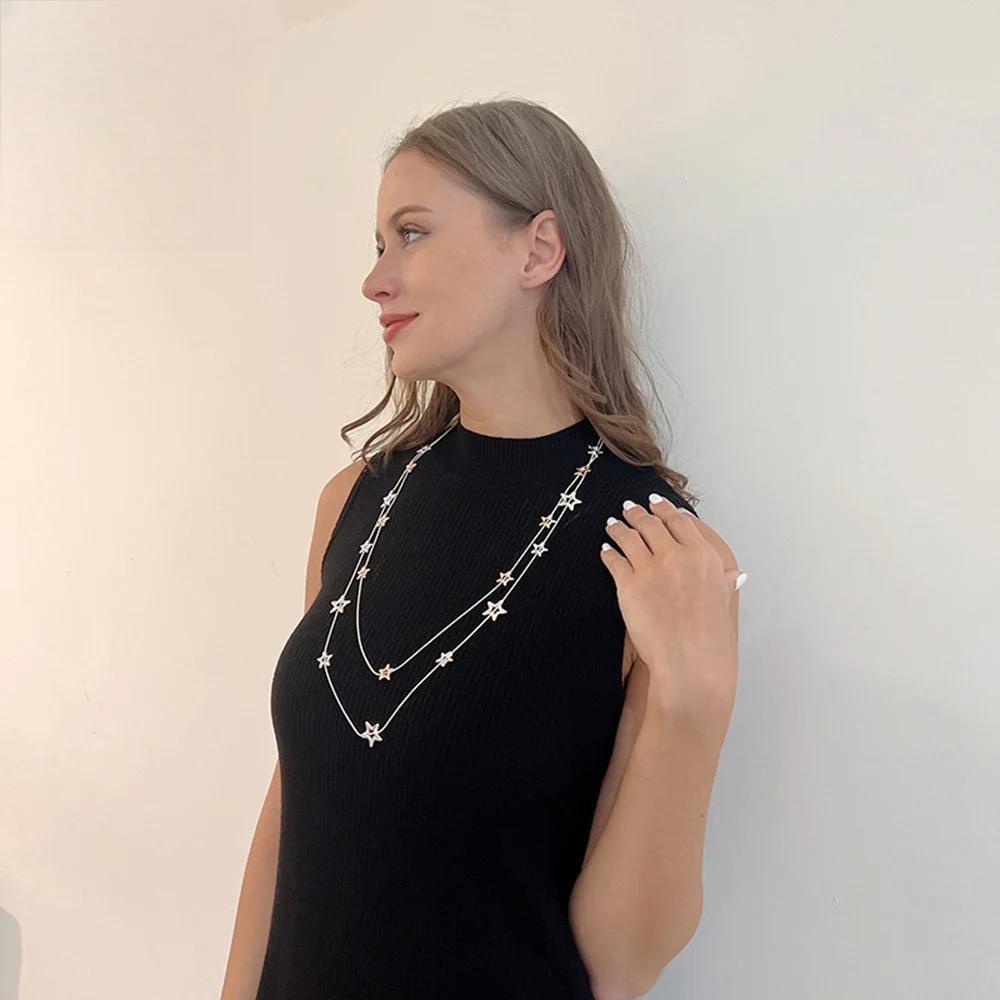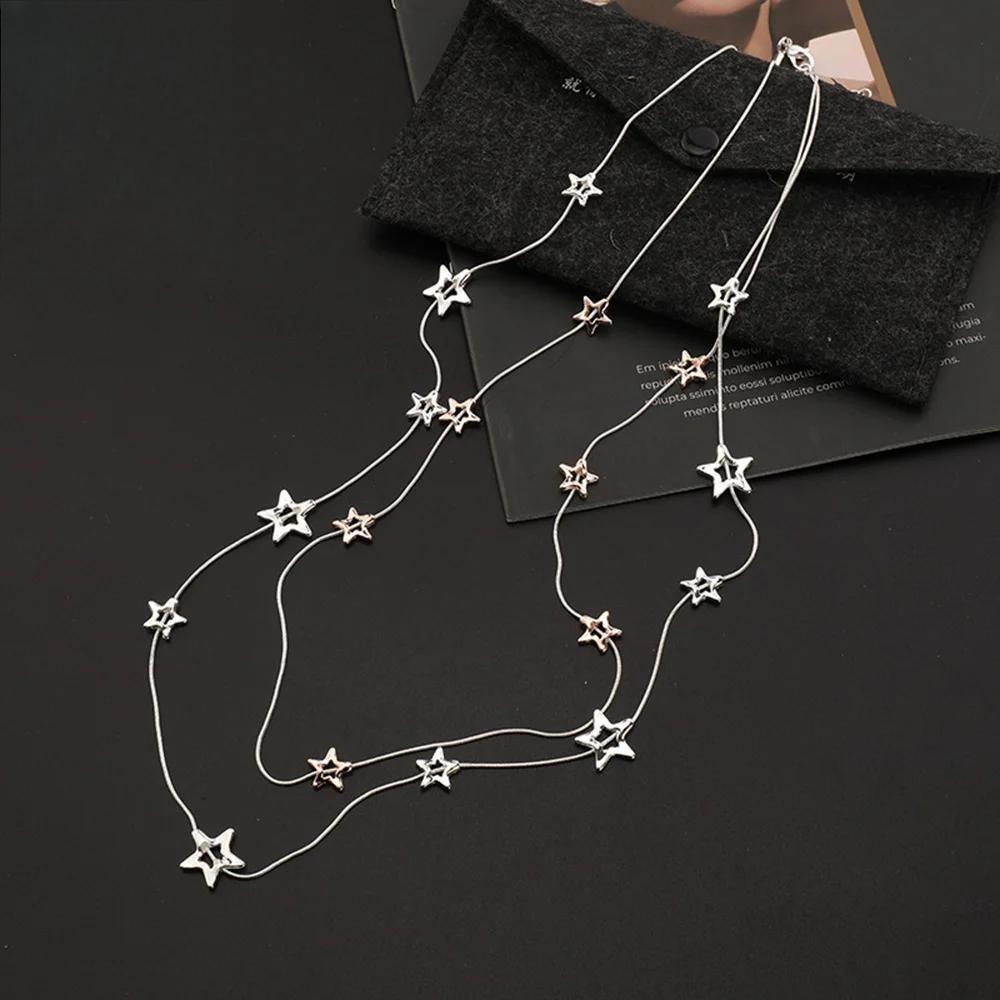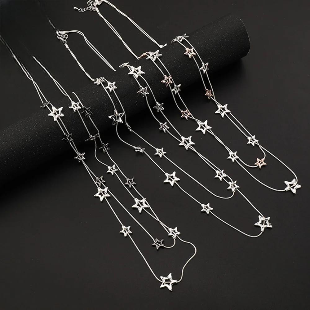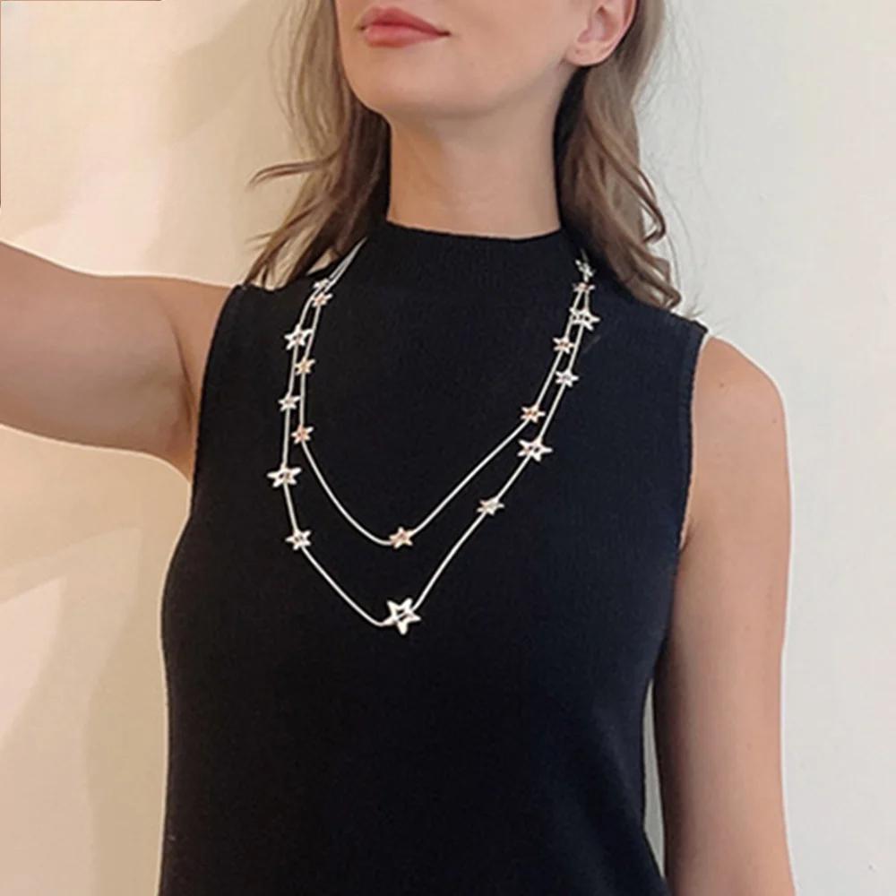 Trending Layers Chains Star Necklace for Women Suspension Korean Fashion Jewelry Pendants Gothic Accessory Valentines Day
