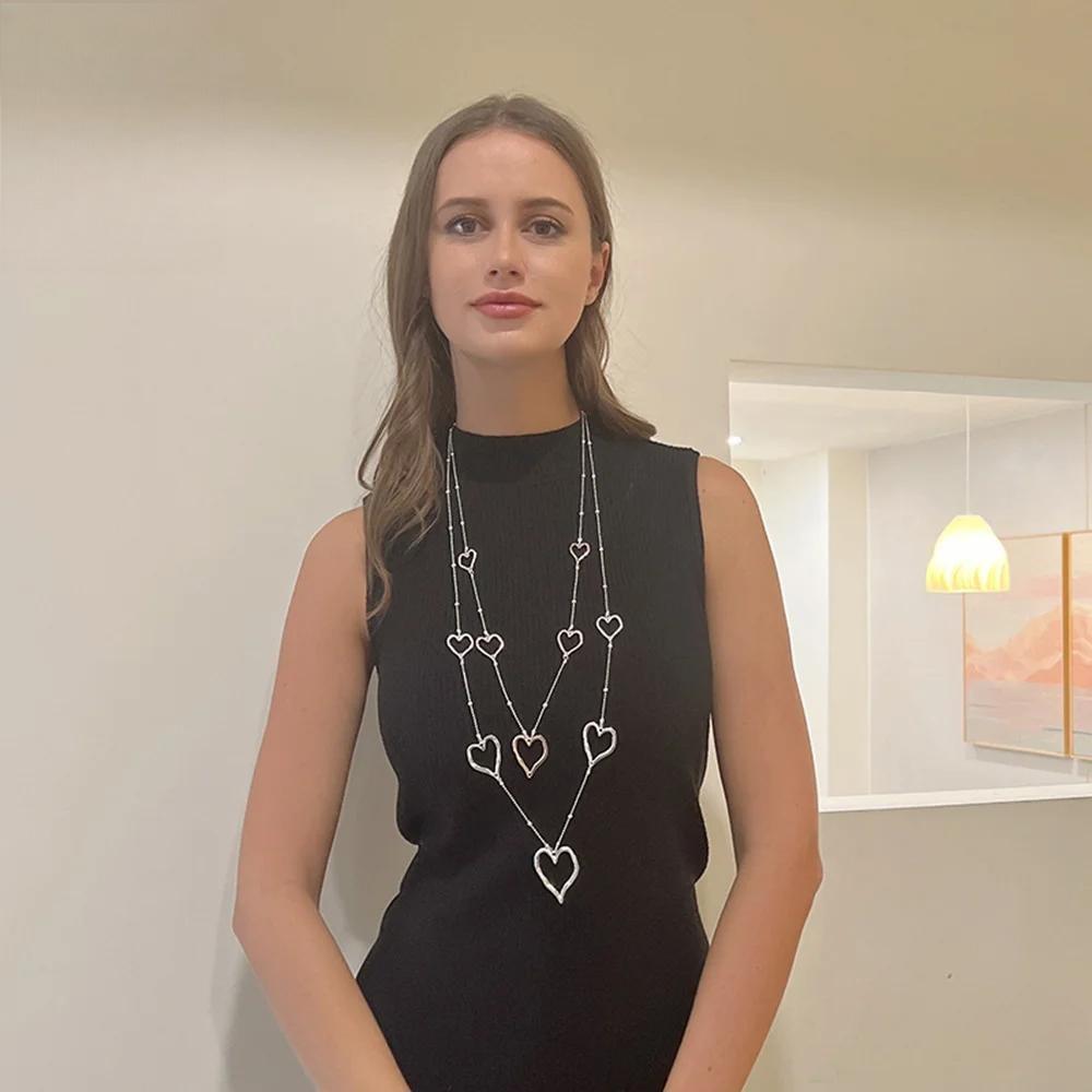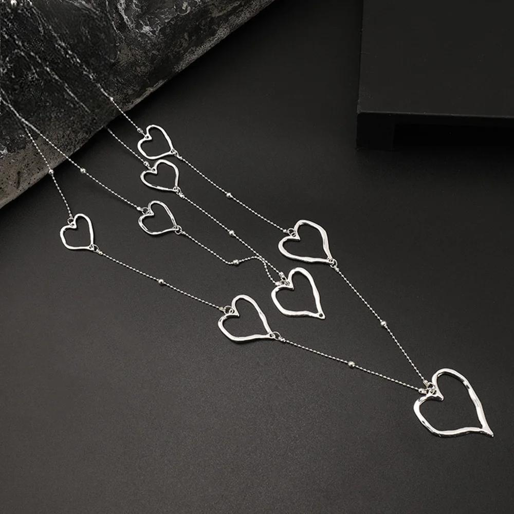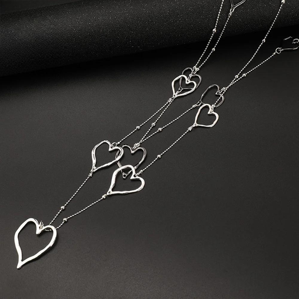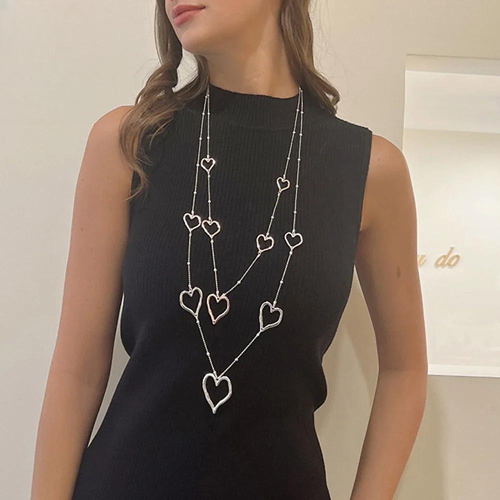 Trending Sweet Heart Long Collares Chains Necklace Geometric New in Pendants Jewelry for Women Gothic Suspension Valentines Day