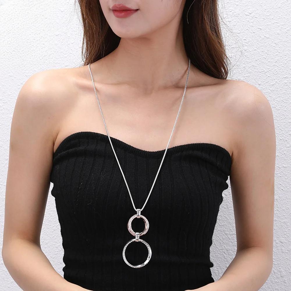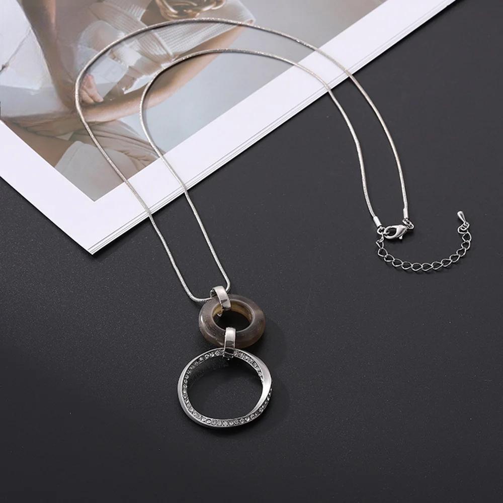 Trendy Alloy Natural Stone Necklace for Women Vintage Long Chains Suspension Pendant Gothic Jewelry Simple Geometric Accessories
