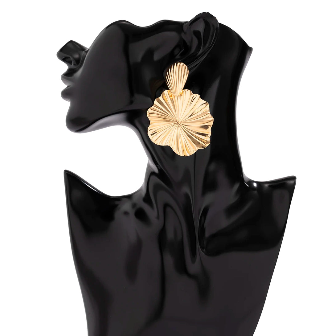 Trendy Geometric Lotus Leaf Shape Pendant Drop Earrings for Women Gold Color Hanging Earrings Ladies Jewelry Wedding Party Gift
