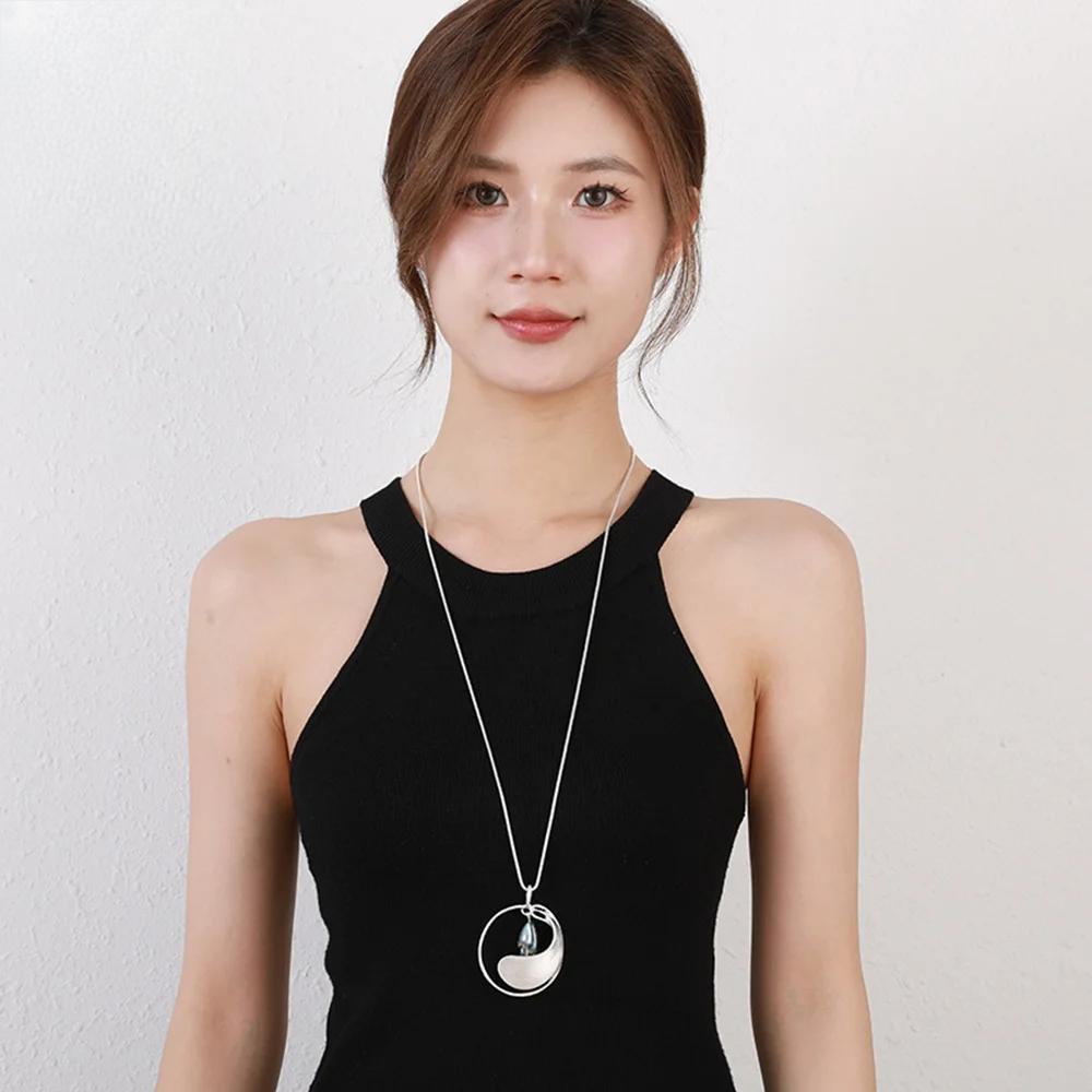 Trendy Geometric Metal Necklace for Women Korean Fashion Silver Color Long Collar Chains Pendants Gothic Jewelry Accessories