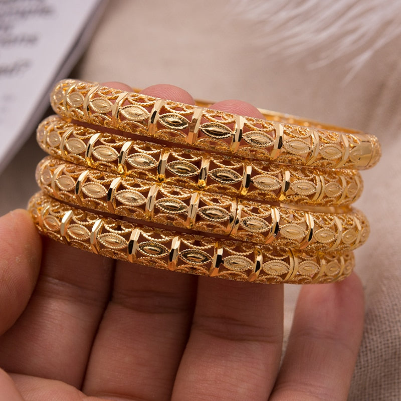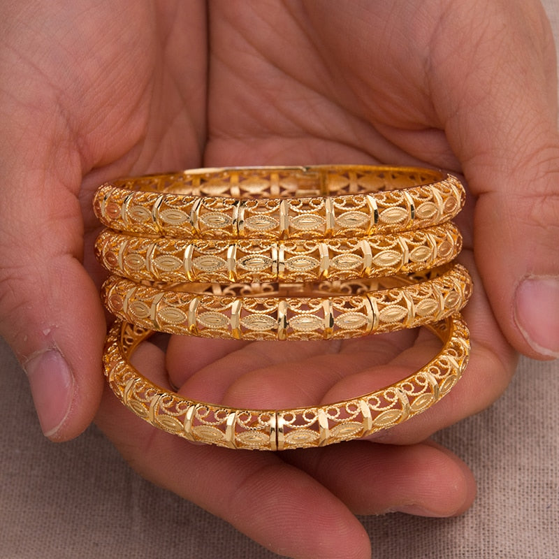 Afraic Jewelry- 1Pcs Trendy Gold Color Bangle Bracelets for Women Gold Copper Bangle Bracelet Middle East Dubai Africa fashion Bangles Jewelry