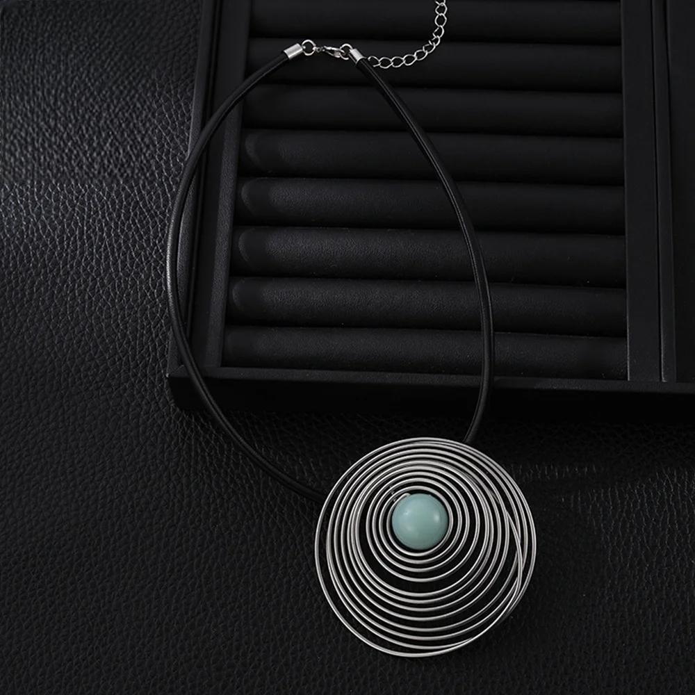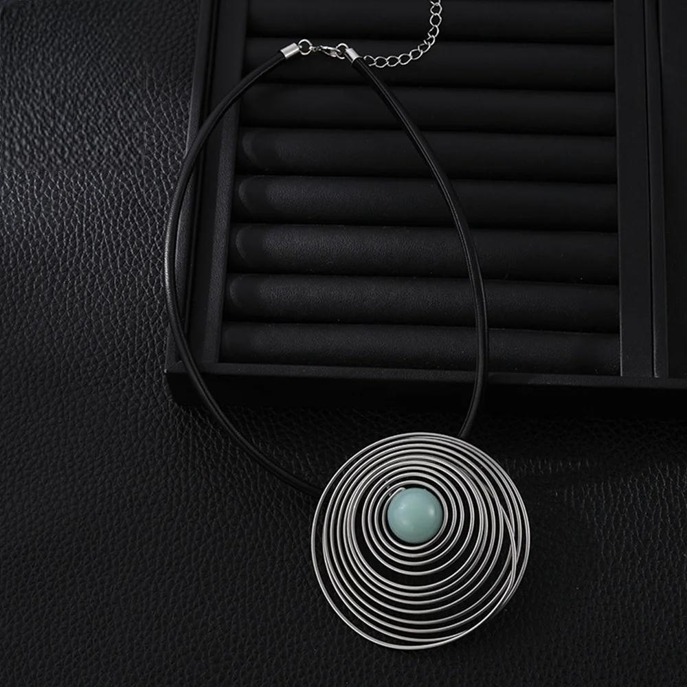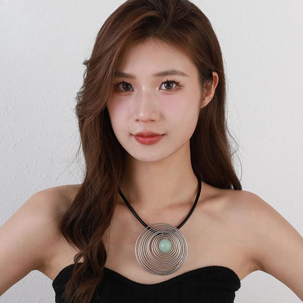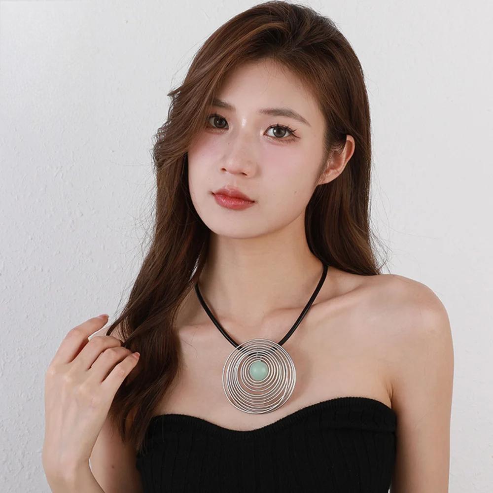 Trendy Neck Chokers Statement Geometric Necklace Silver Color Hollow Out Circles Pendants with Bead Gothic Jewelry for Women New