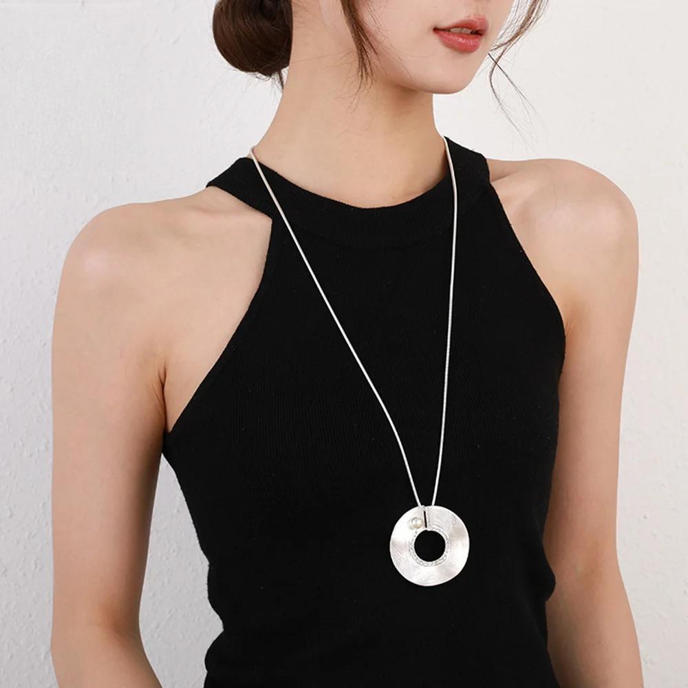 Trendy Silver Color Necklace for Women Korean Fashion Neck Chokers Geometric Statement Metal Pendants Goth Jewelry Accessories