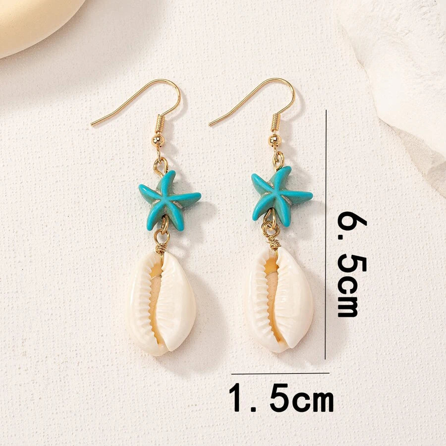 Name:Turquoise Stone Bule Starfish Shell Drop Earrings