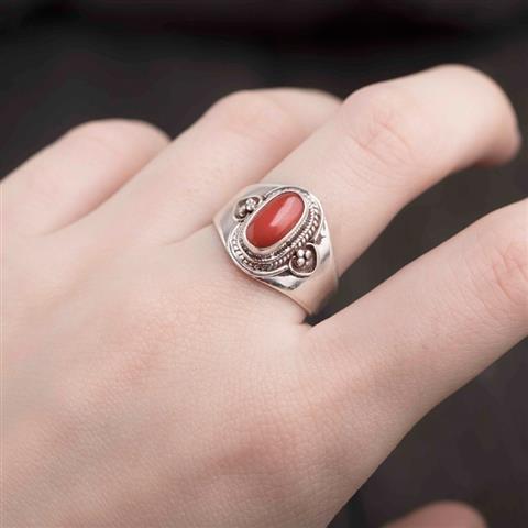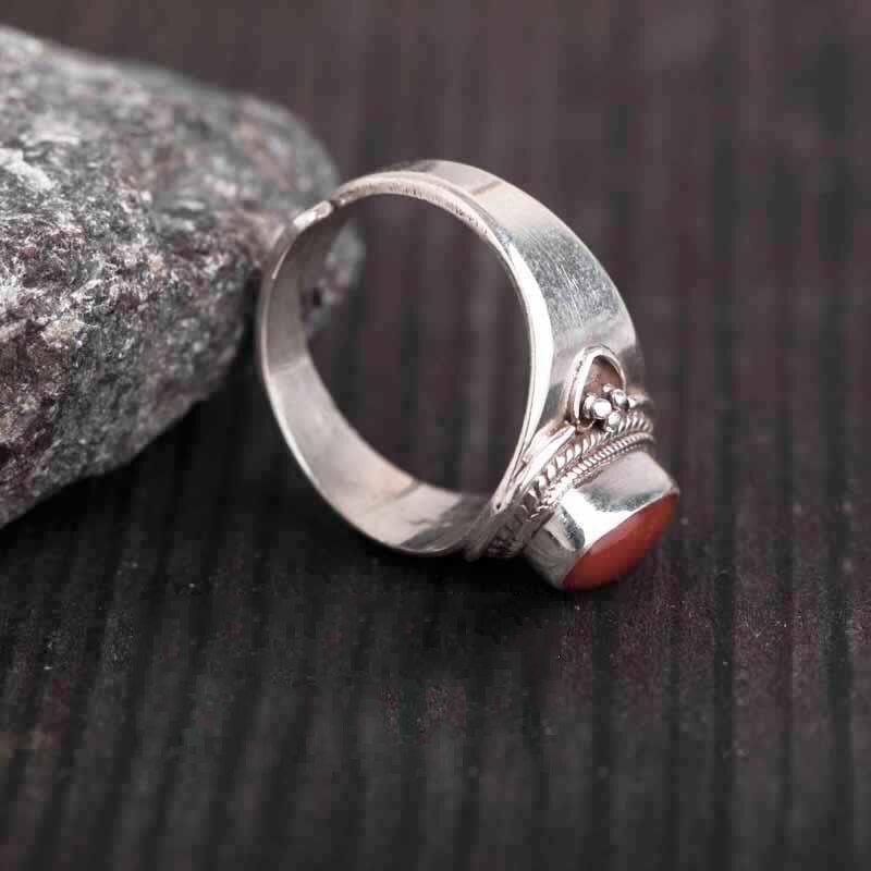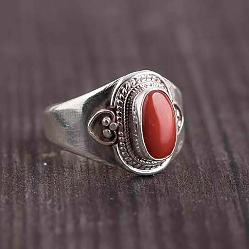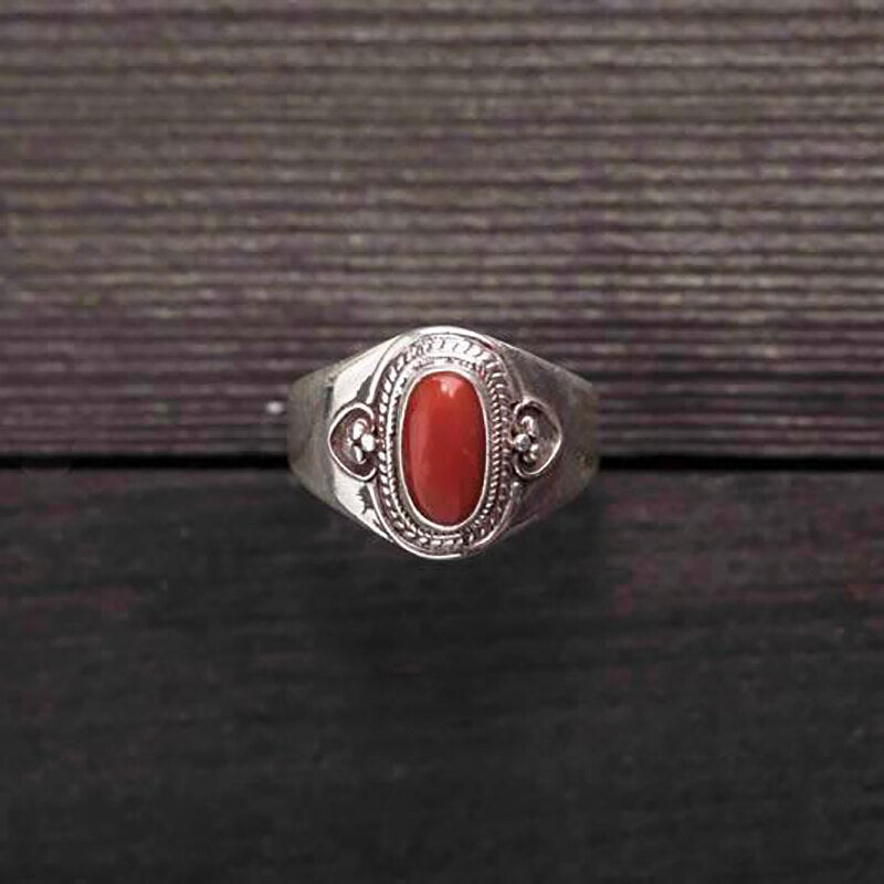 Cocktail Ring-Unique design Nepal handmade silver inlaid southern red tourmaline opening adjustable ring retro ethnic style ladies jewelry