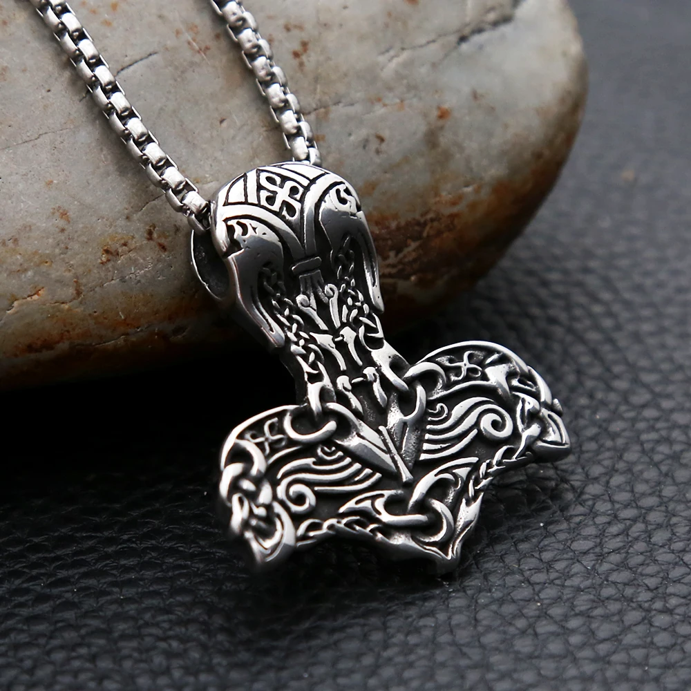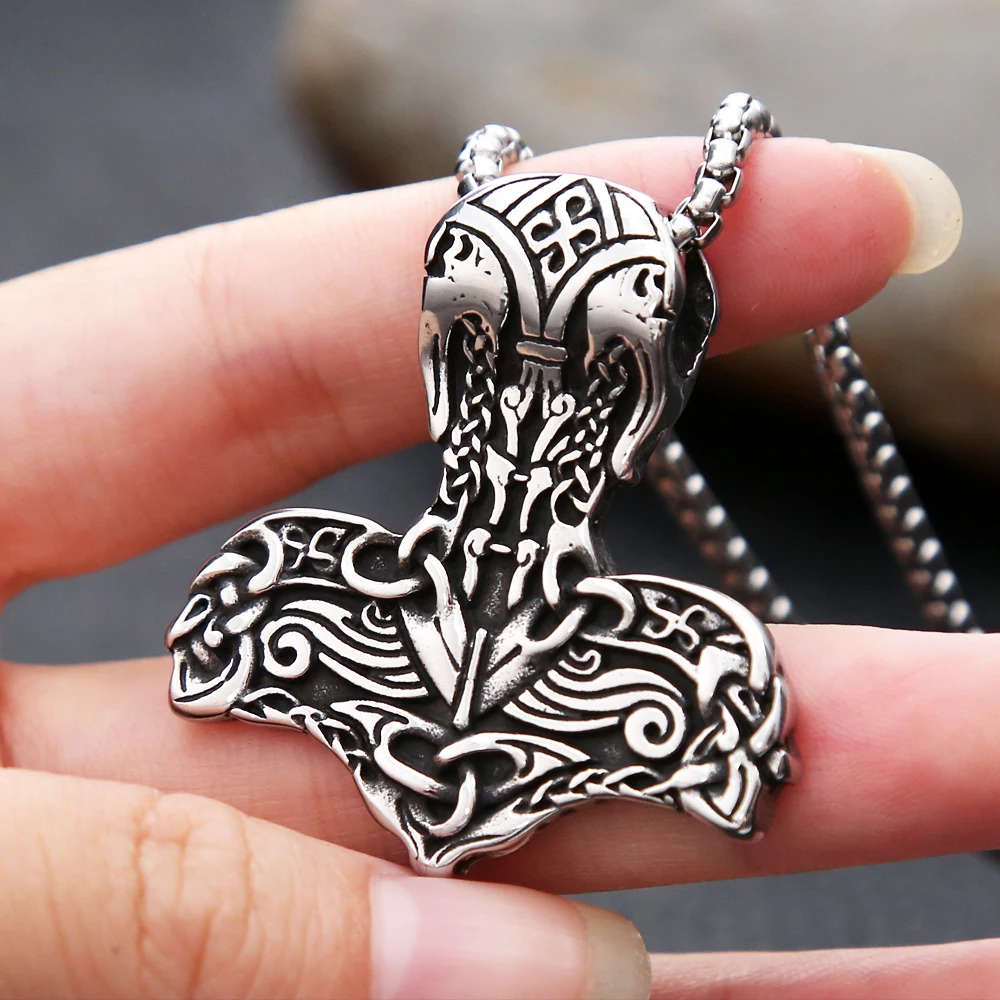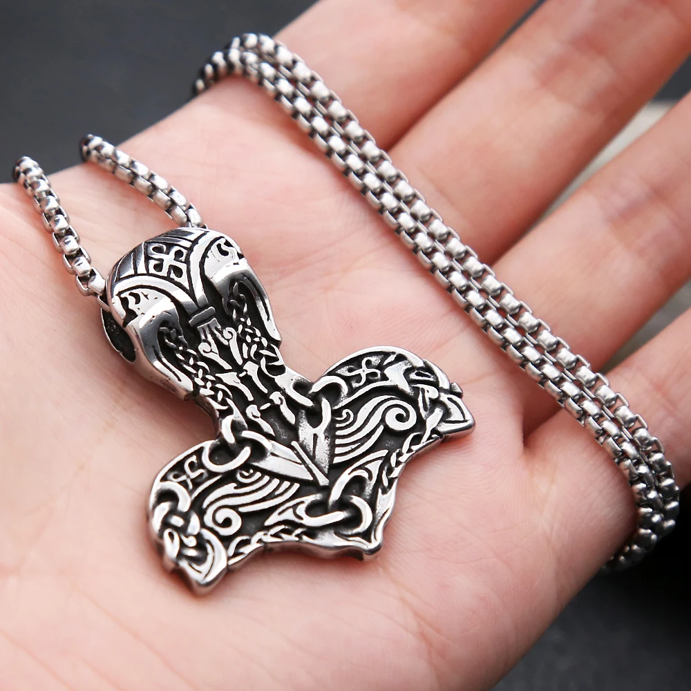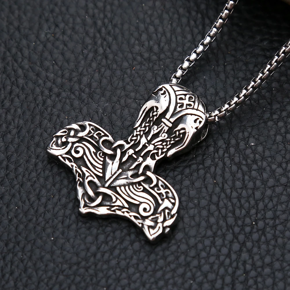 Name: Unique Vintage Viking Thor's Hammer Pendant Necklace For Men Stainless Steel Gothic Biker Fashion Runes Amulet Jewelry Wholesale
