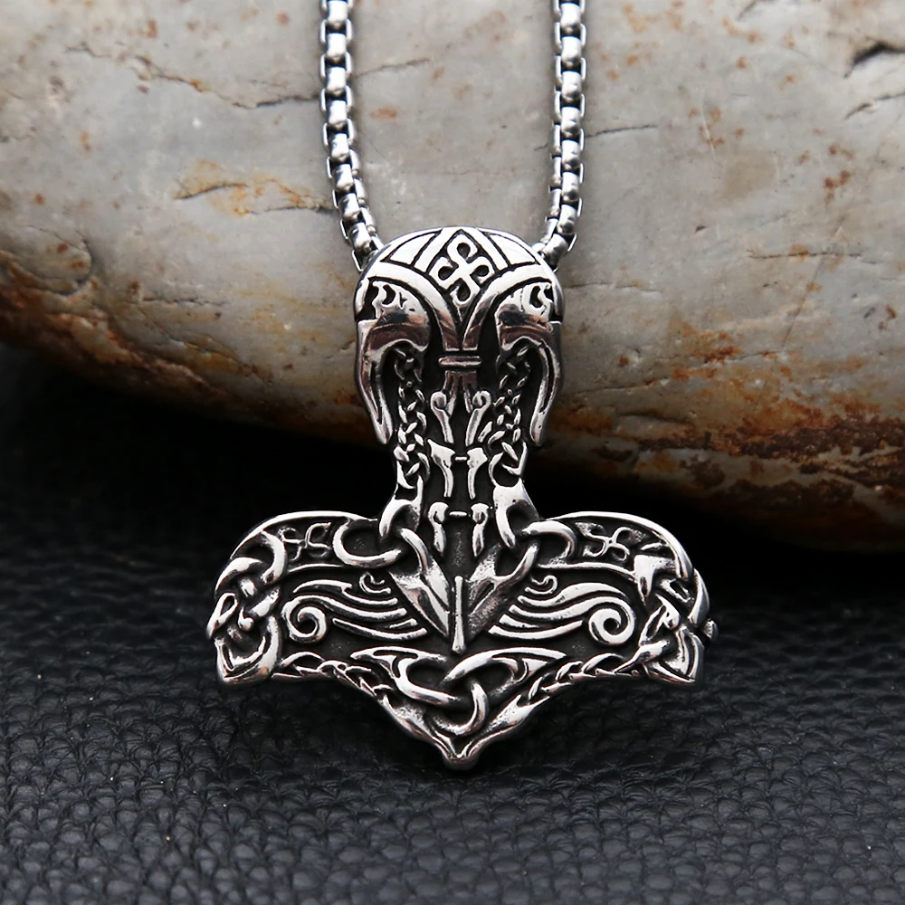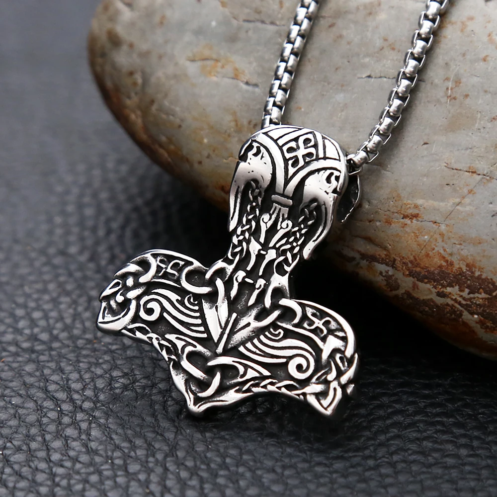 Vikings Jewelry-Unique Vintage Viking Thor's Hammer Pendant Necklace For Men Stainless Steel Gothic Biker Fashion Runes Amulet Jewelry
