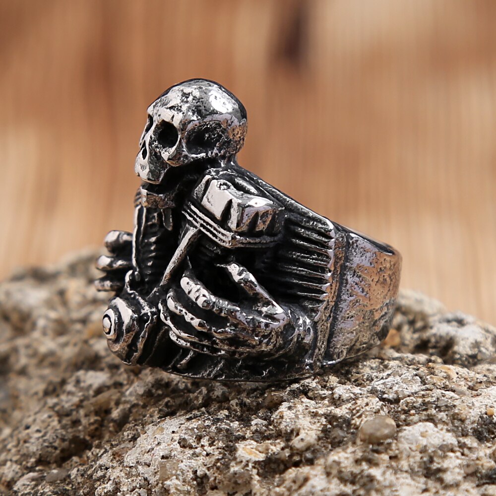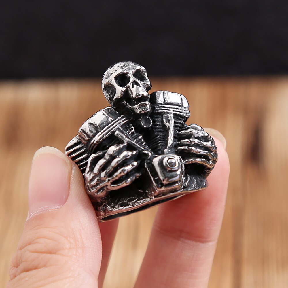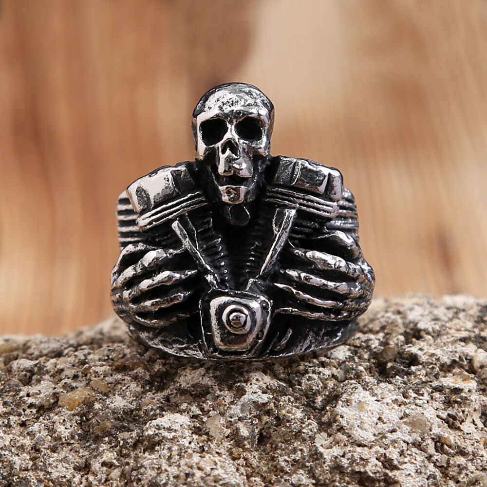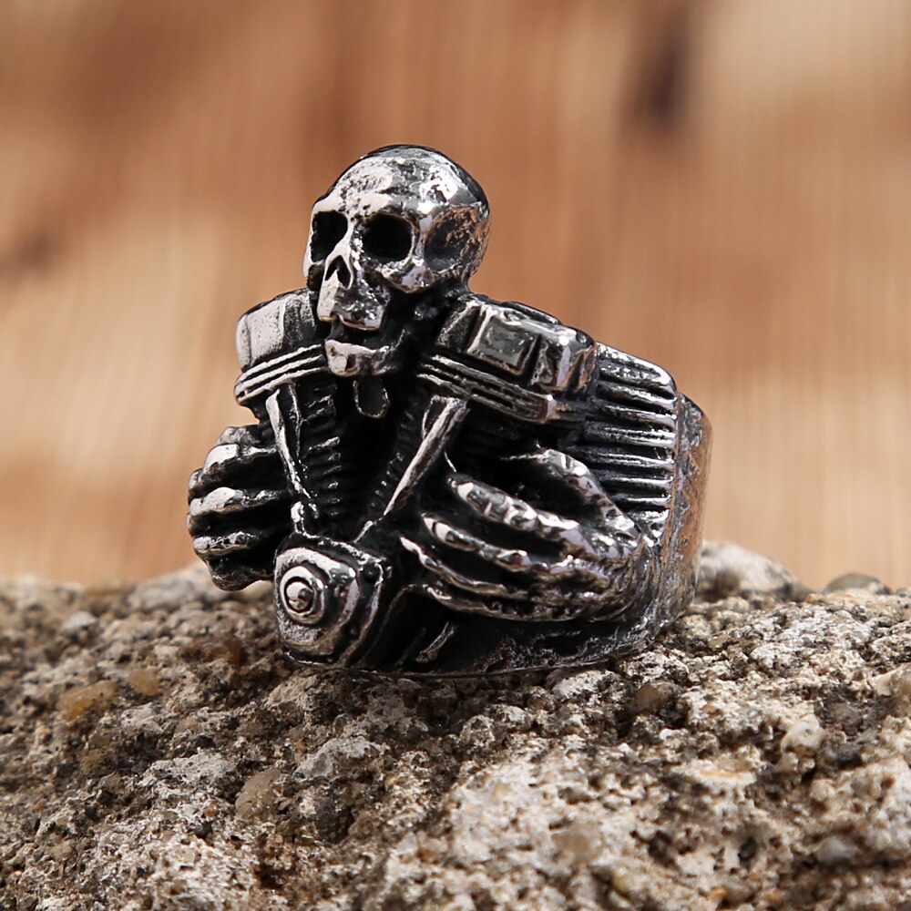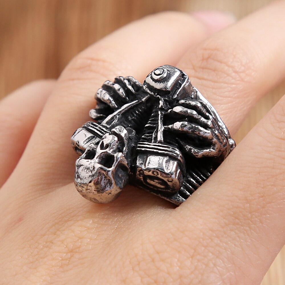 Name: Vintage 316L Stainless Steel Steampunk Motorcycle Engine Skull Rings For Men Fashion Biker Fashion Creative Jewelry