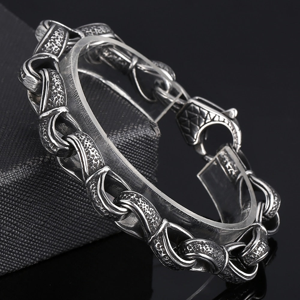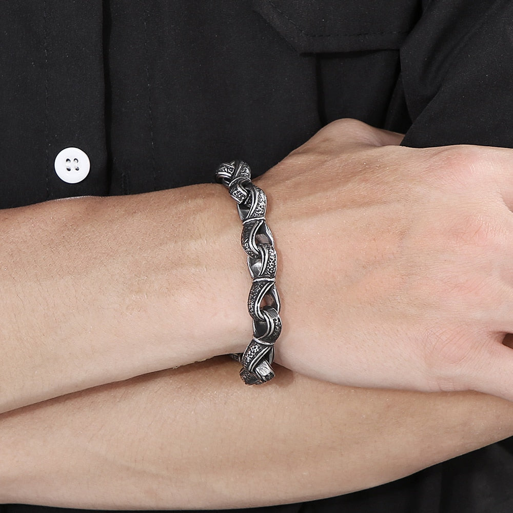 Vintage Bracelet for Men In Solid 316L Stainless Steel Retro Carving Nordic Viking Jewelry