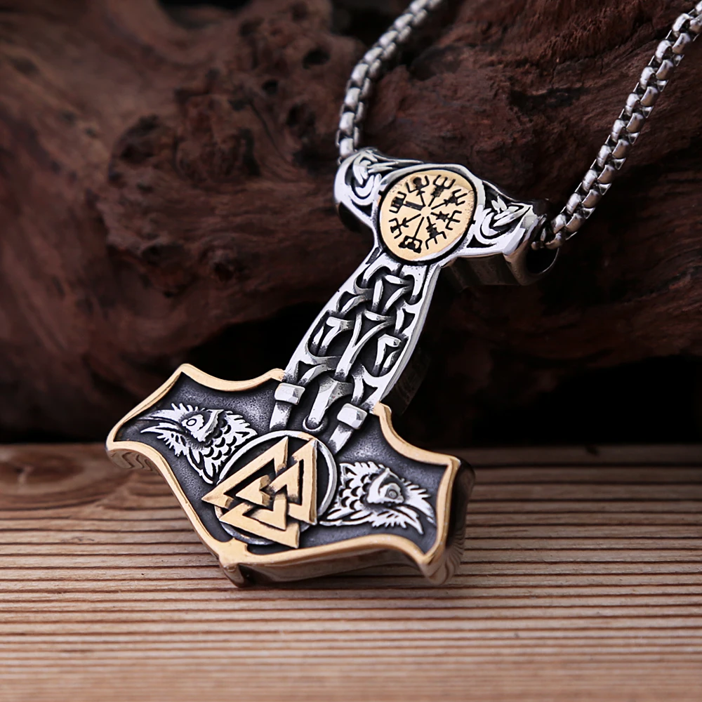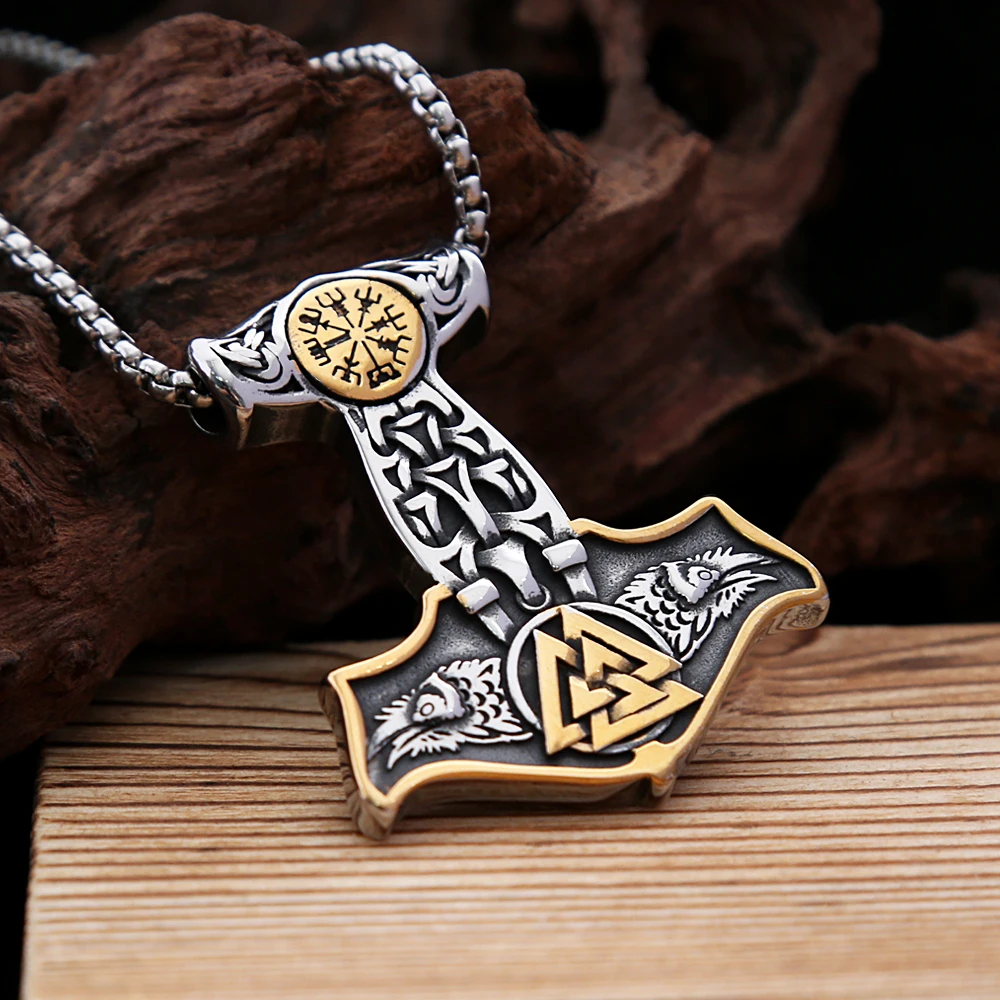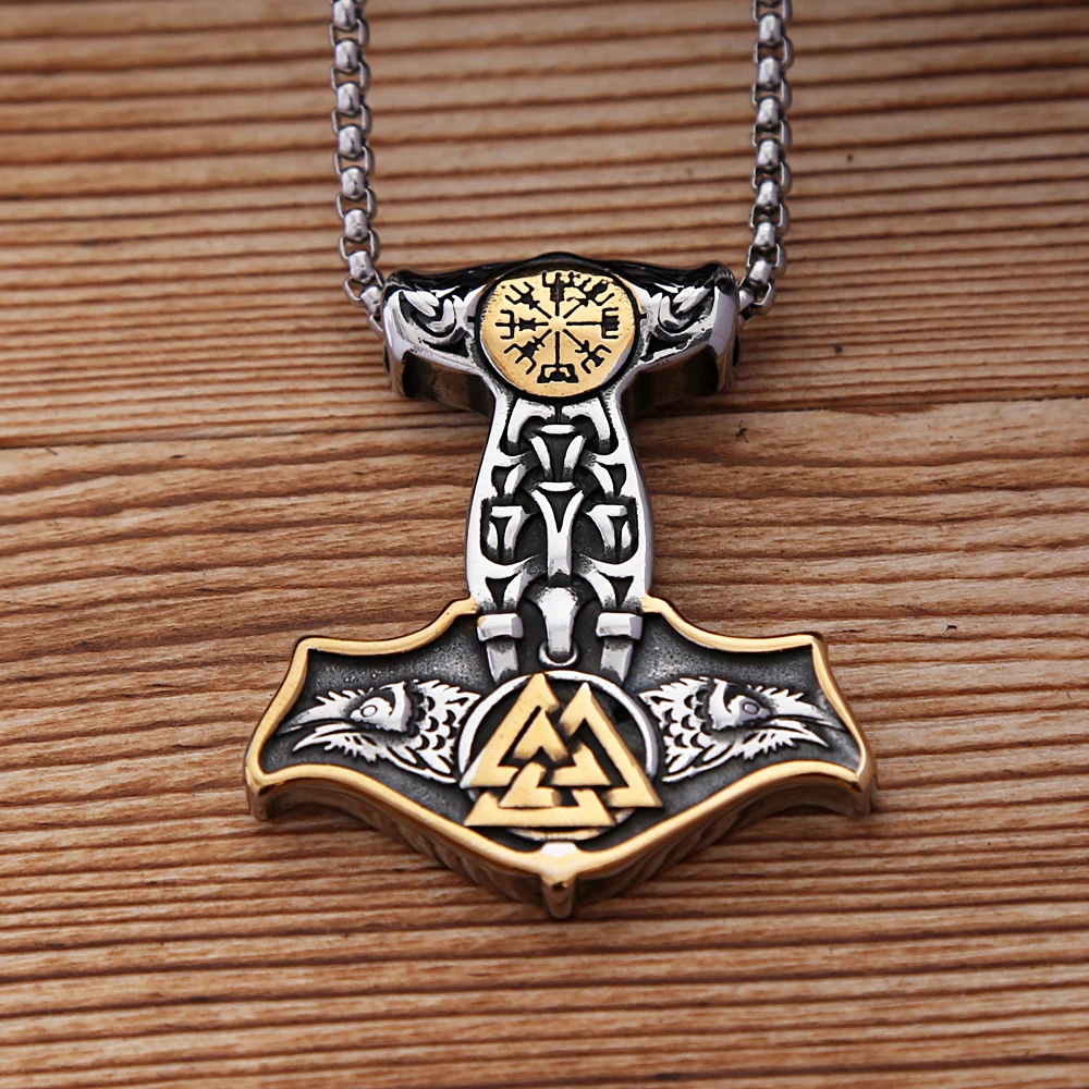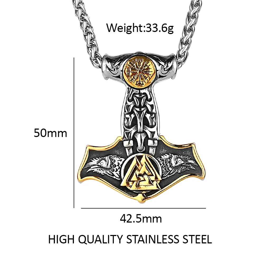 Name: Vintage Double Nordic Compass Eagle Stainless Steel Viking Thor's Hammer Pendant Necklace Men's Fashion Amulet Jewelry Gifts