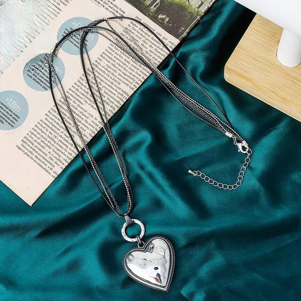 Vintage Long Chains Colar Necklace Love Sweet Heart Suspension Pendants Christmas Gift New in Korean Fashion Jewelry for Women