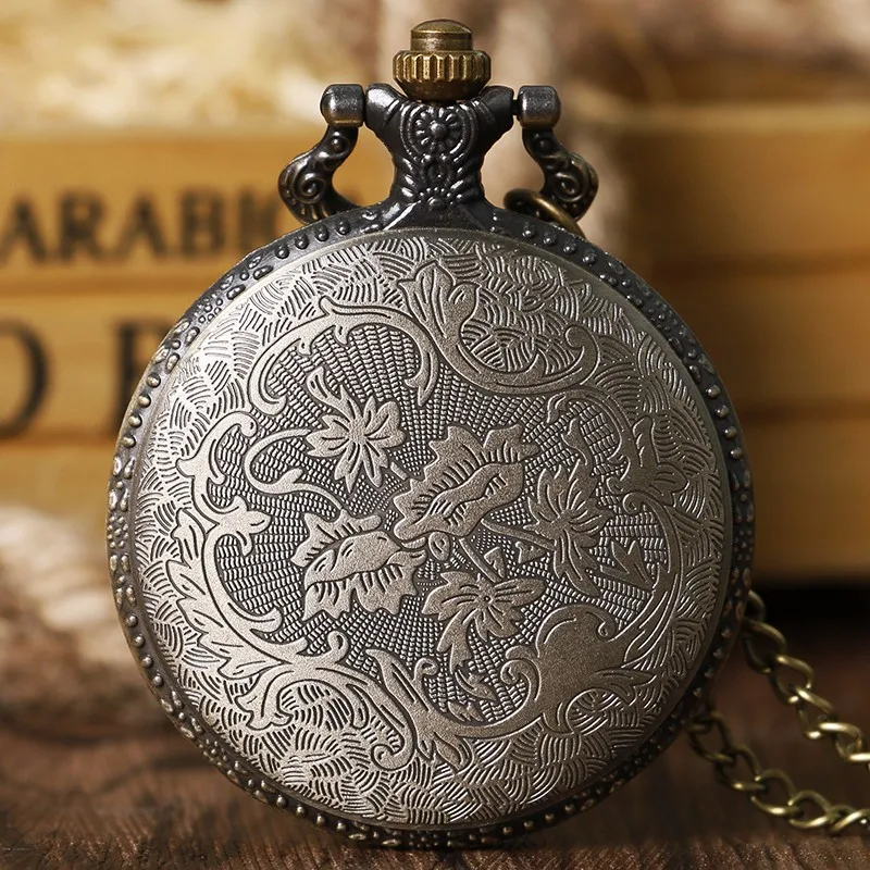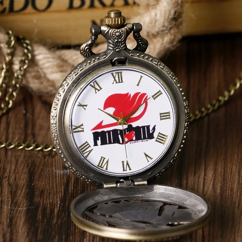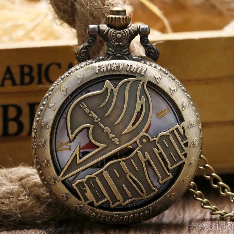 Pocket & Fob Watches-Vintage Pocket Watches Animate Fairy Tail Pattern Hollow Natus Dragneel Design Vintage Quartz Fob Watch With Necklace Chain