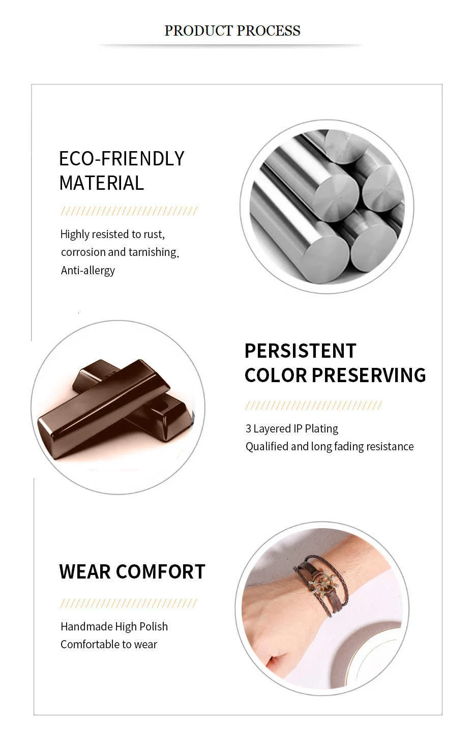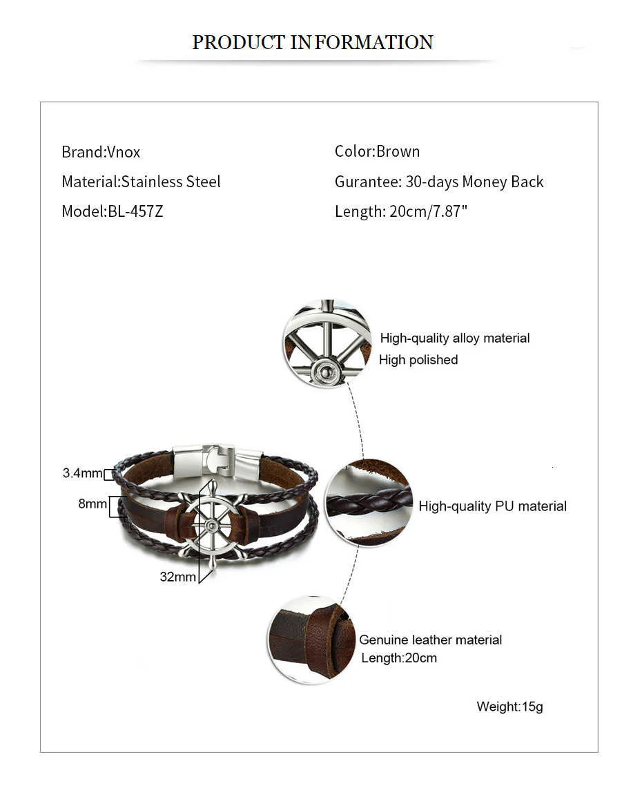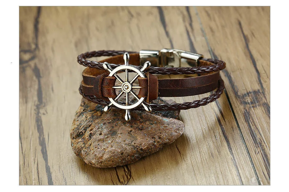 Leather Bracelet- Vintage Rudder Charm Bracelet for Men Multi-layer Leather Rope Bracelets Bangles