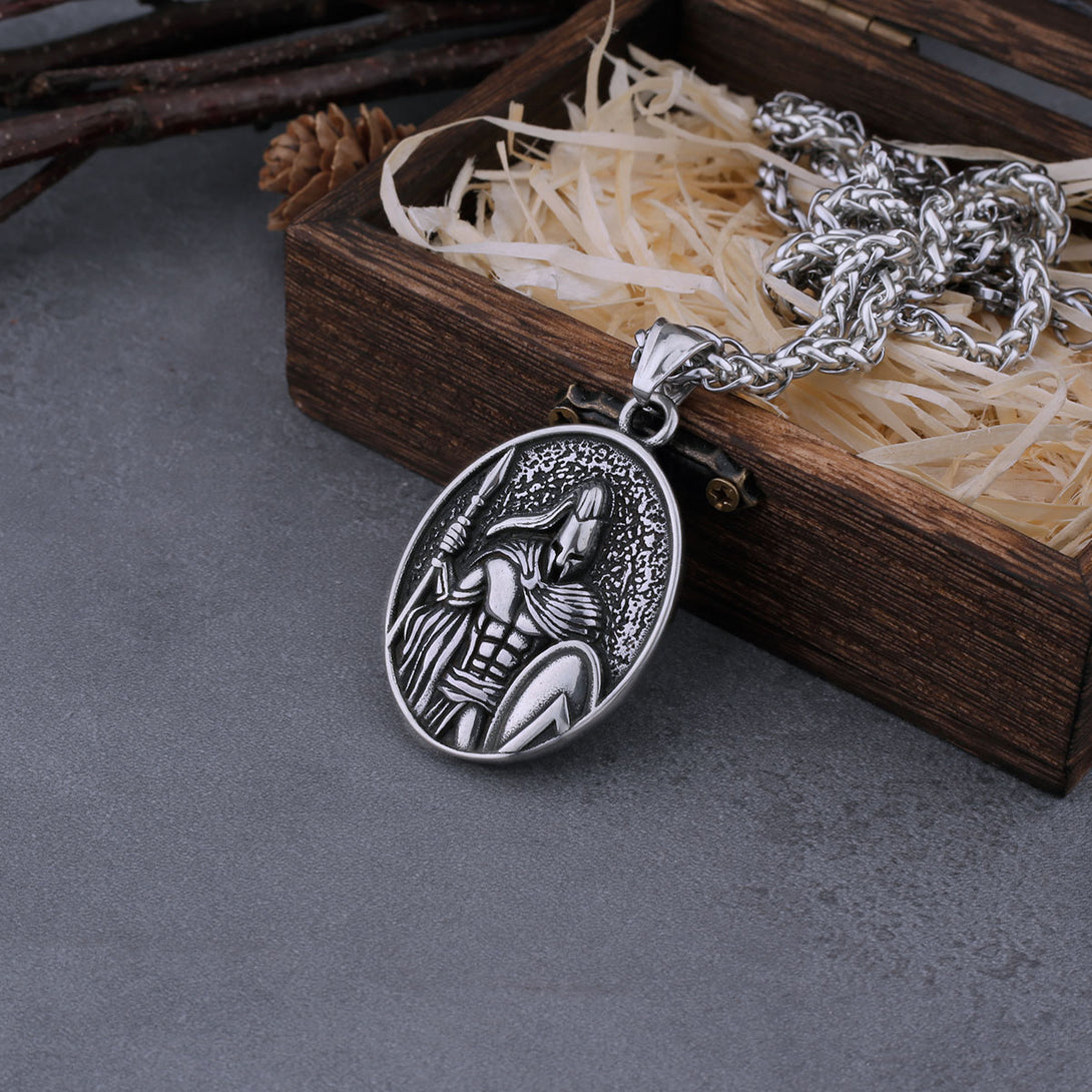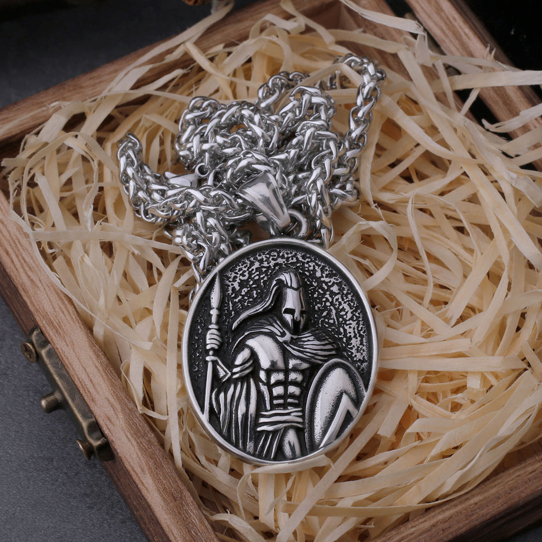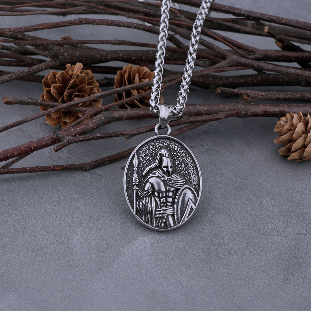 Vikings Jewelry-Vintage Spartan Warrior Shield Necklace Men Ancient Greek Warrior Punk Hip Hop Pendant Stainless Steel Party Biker Jewelry Gift