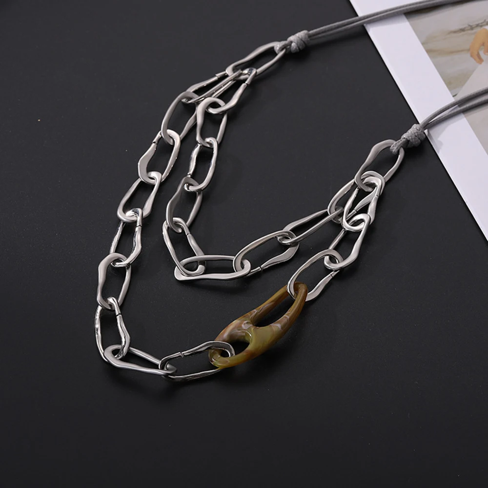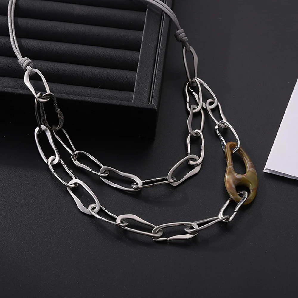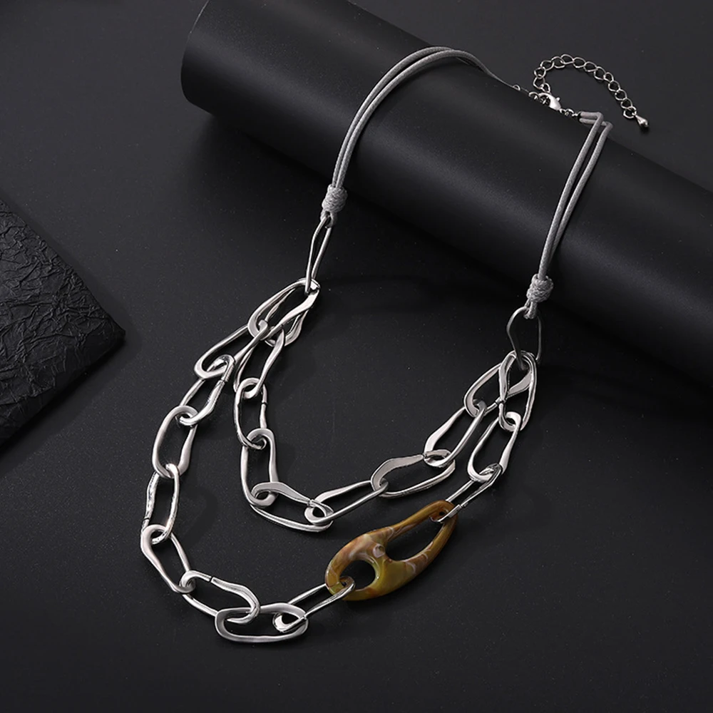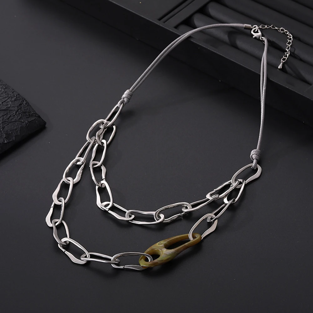 Vintage Statement Necklace for Women Trendy Alloy Metal Layers Suspension Pendants
