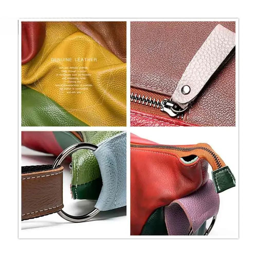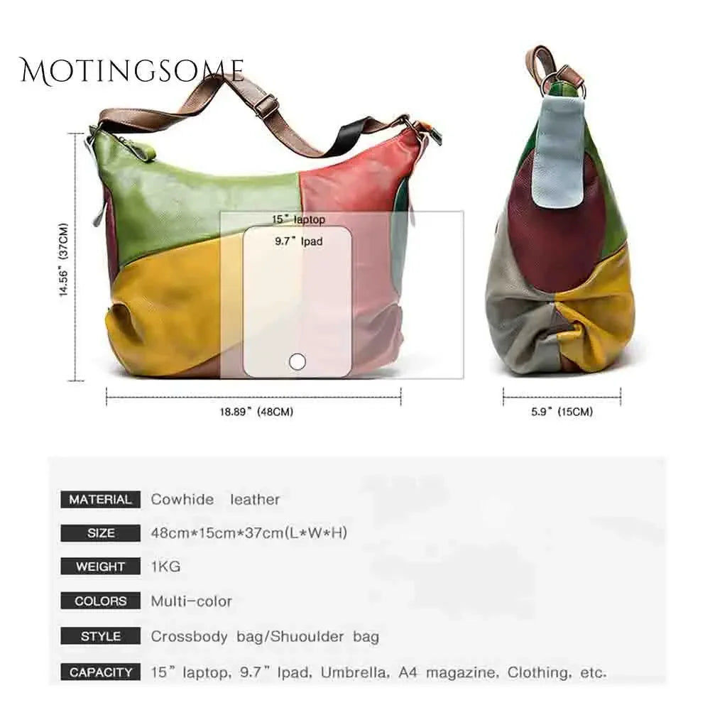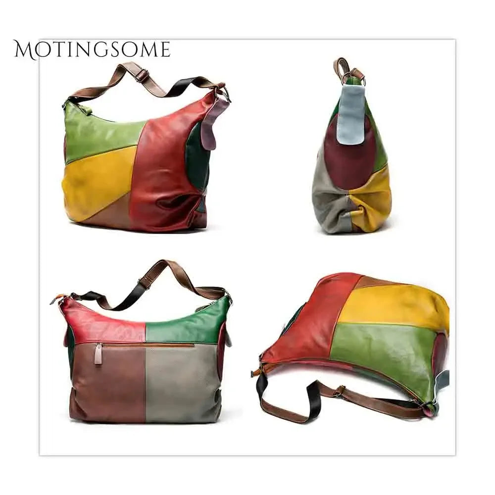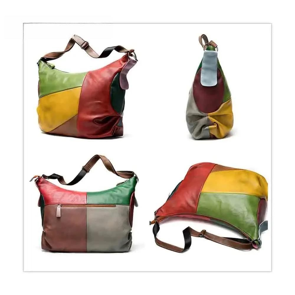 Genuine Leather Women Hobos Bag Handwork Vintage style Patchwork Real Leather Shopper Bag Fashion Bags Ladies Luxury Bags