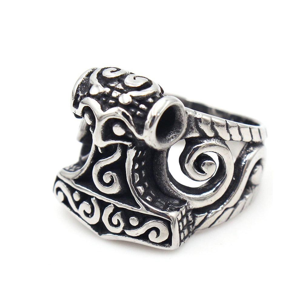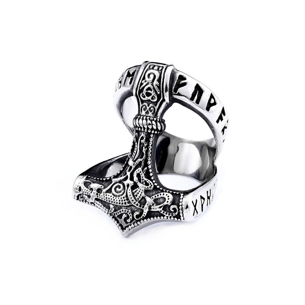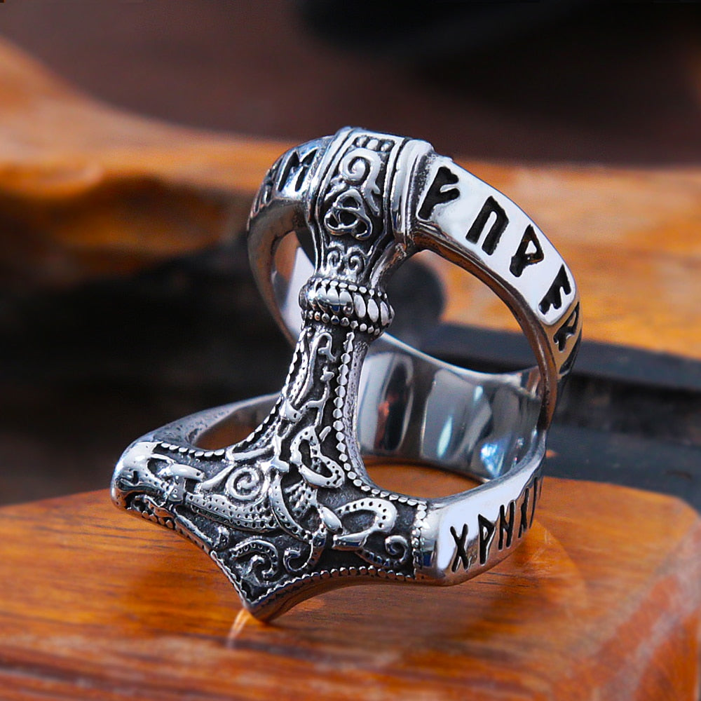 Vikings Jewelry-Vintage Viking Thor's Hammer Ring Mens Nordic Odin Rune Ring Stainless Steel Jewelry Biker Amulet Gift