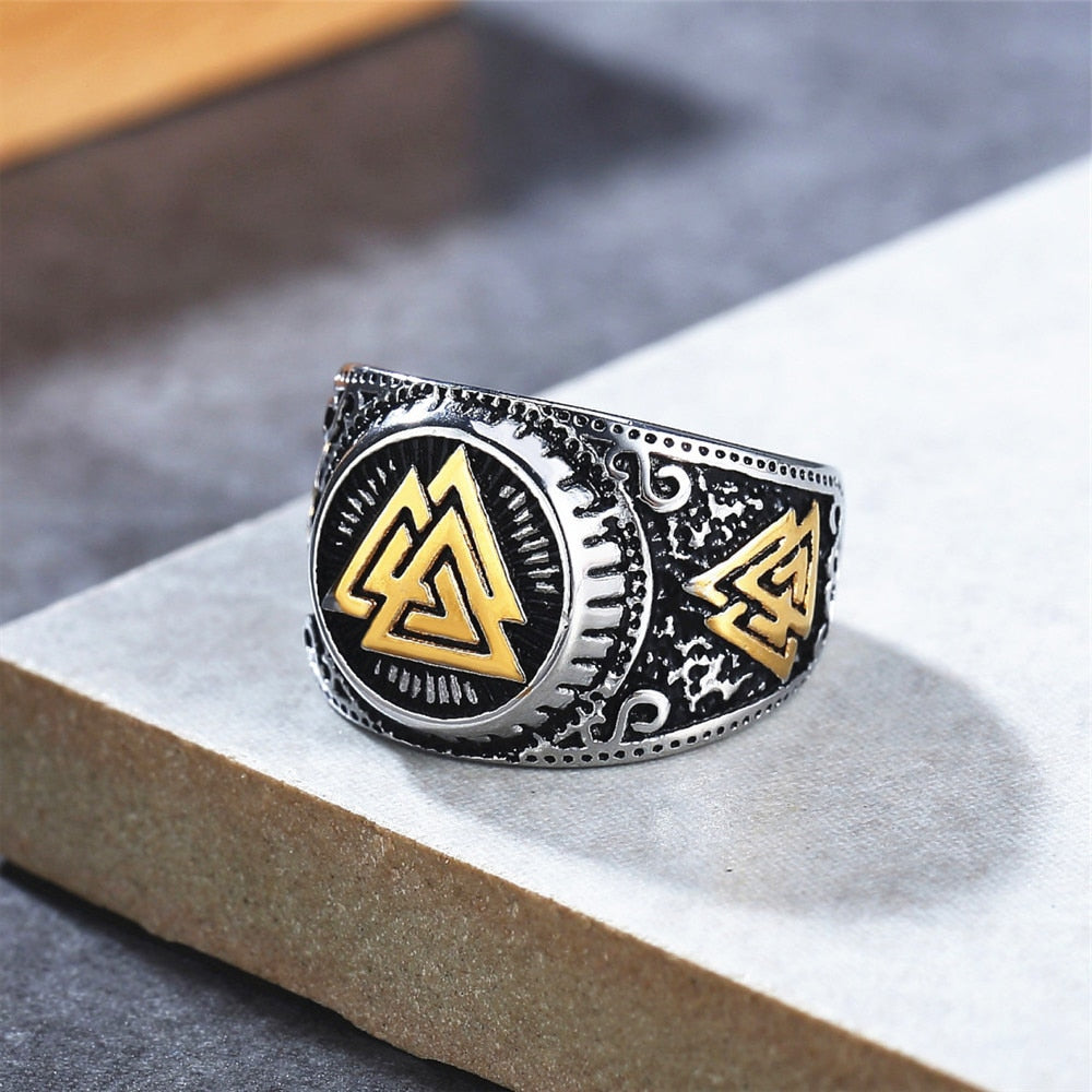 Vintage Viking Valknut Ring For Men Stainless Steel Nordic Odin Triangle Viking Ring