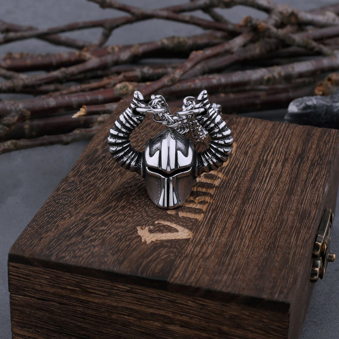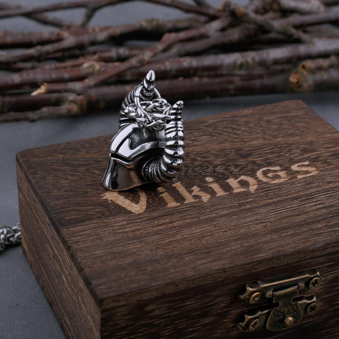 Vikings Jewelry-Vintage Viking Warrior Horned Helmet Necklace Men's High Quality Symbol Power Statement Stainless Steel Pendant Viking Jewelry