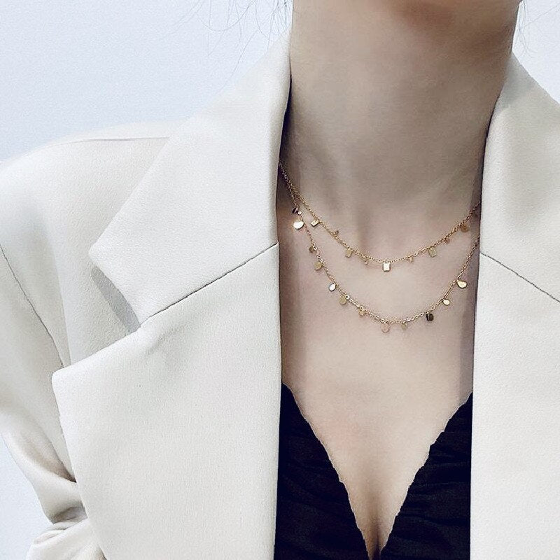 585 Gold Jewelry-316L Stainless Steel Water Drop Tassel Pendant Necklace Bohemia Party Link Chain Necklace For Women