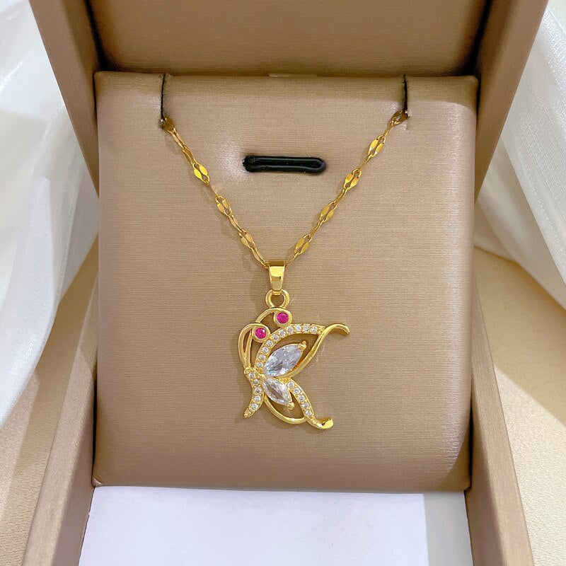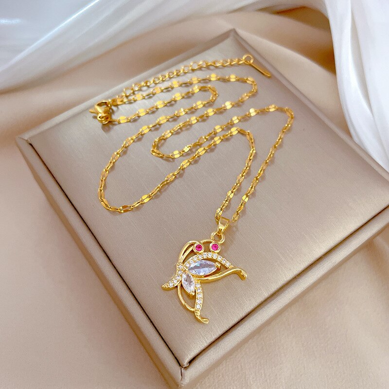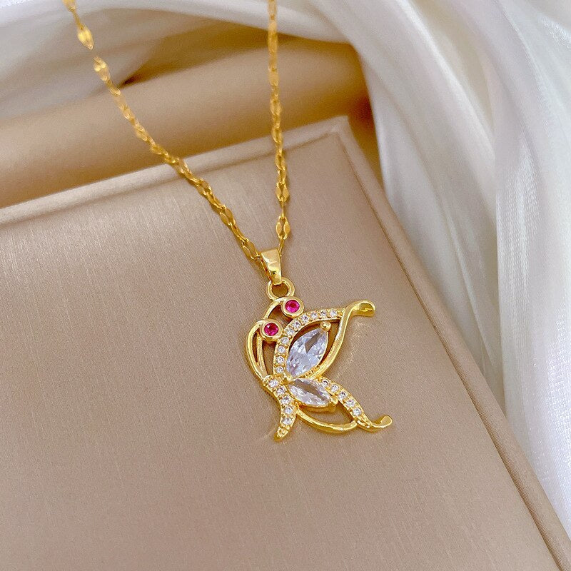 585 Gold Jewelry-316L Stainless Steel Wedding Jewelry Romantic Colorful Zirconia Butterfly Pendant Necklace For Women Titanium Steel Choker