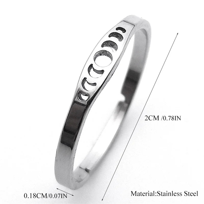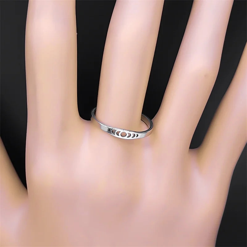 Witch Moon Phase Change Rings for Women Stainless Steel Silver Color Crescent Female Finger Ring Jewelry Wholesale