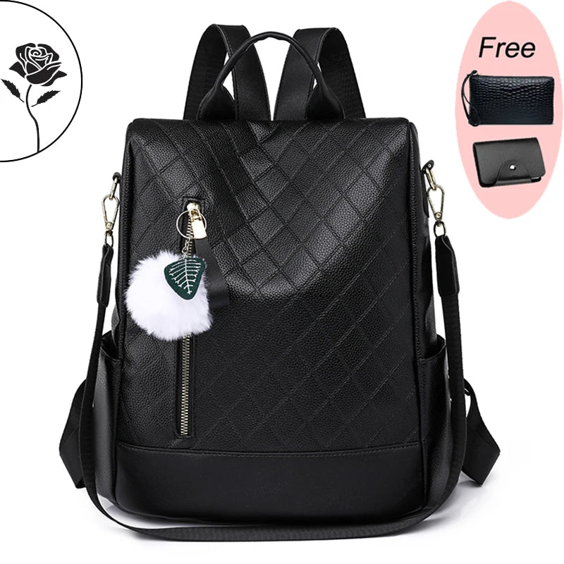 Women Backpack Casual Shoulder Bag Fashion pu Leather Female Daypack Stylish Elegant Girls Backpack Women Bag Gift Wallet