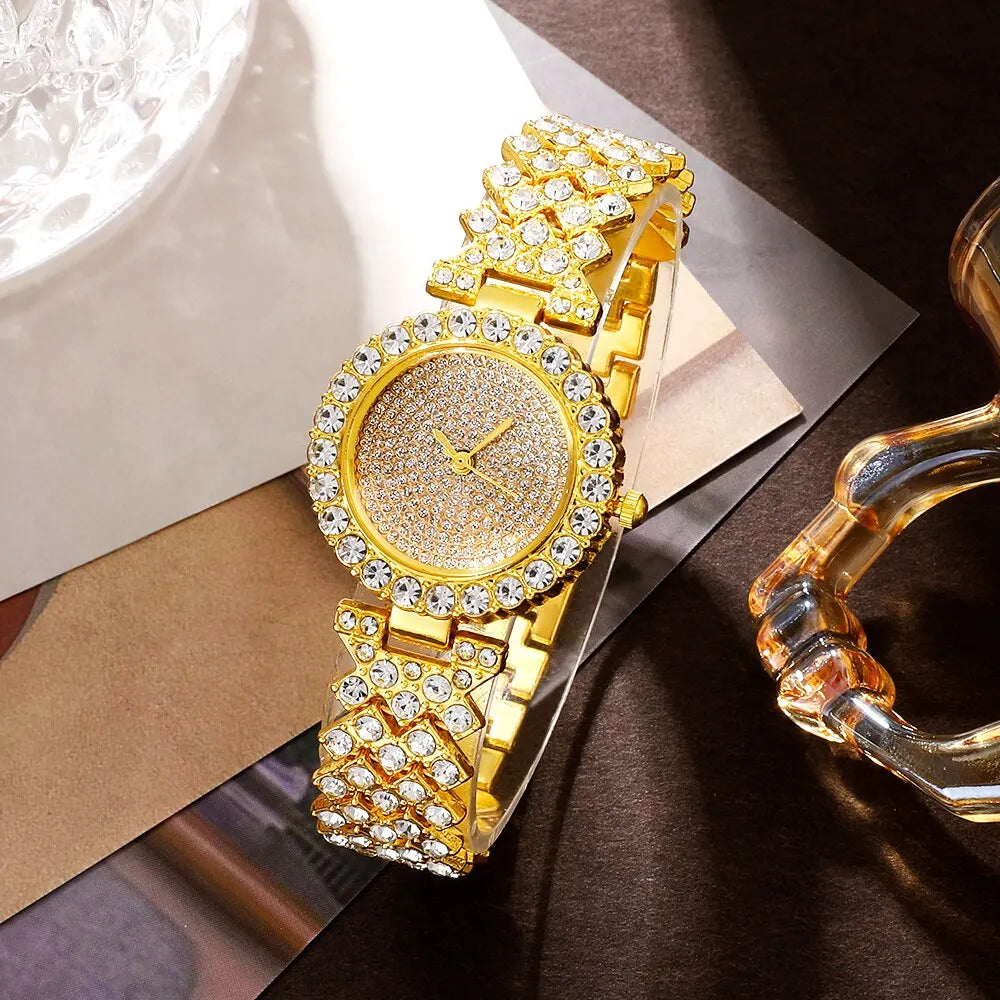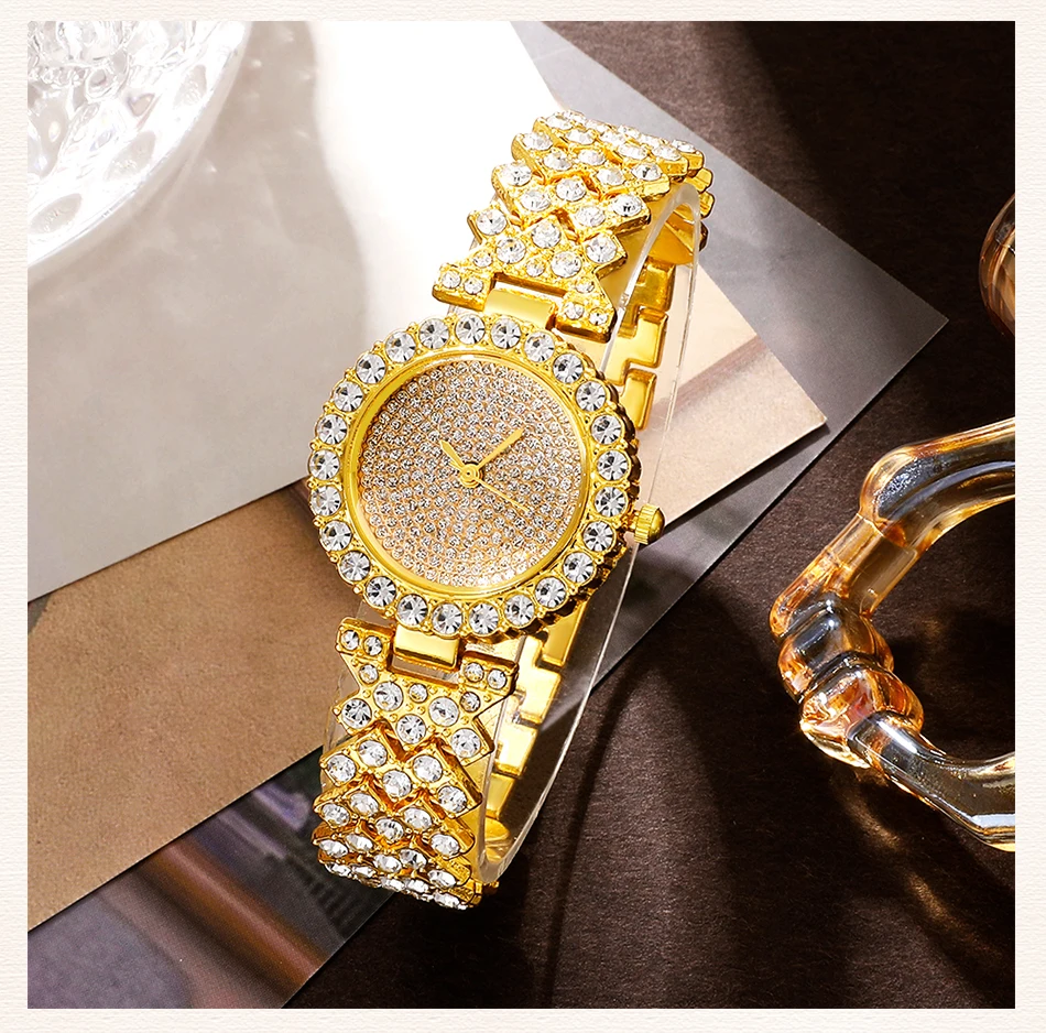 • Rhinestone-encrusted :The rhinestone-encrusted design of the watch and jewelry set adds a touch of glamour and sophistication to any look.