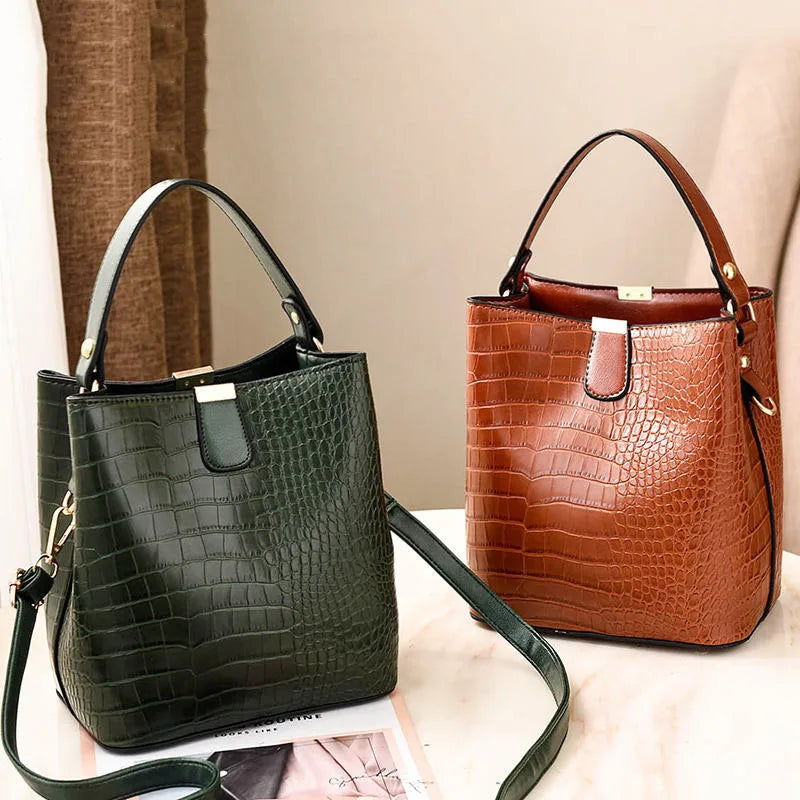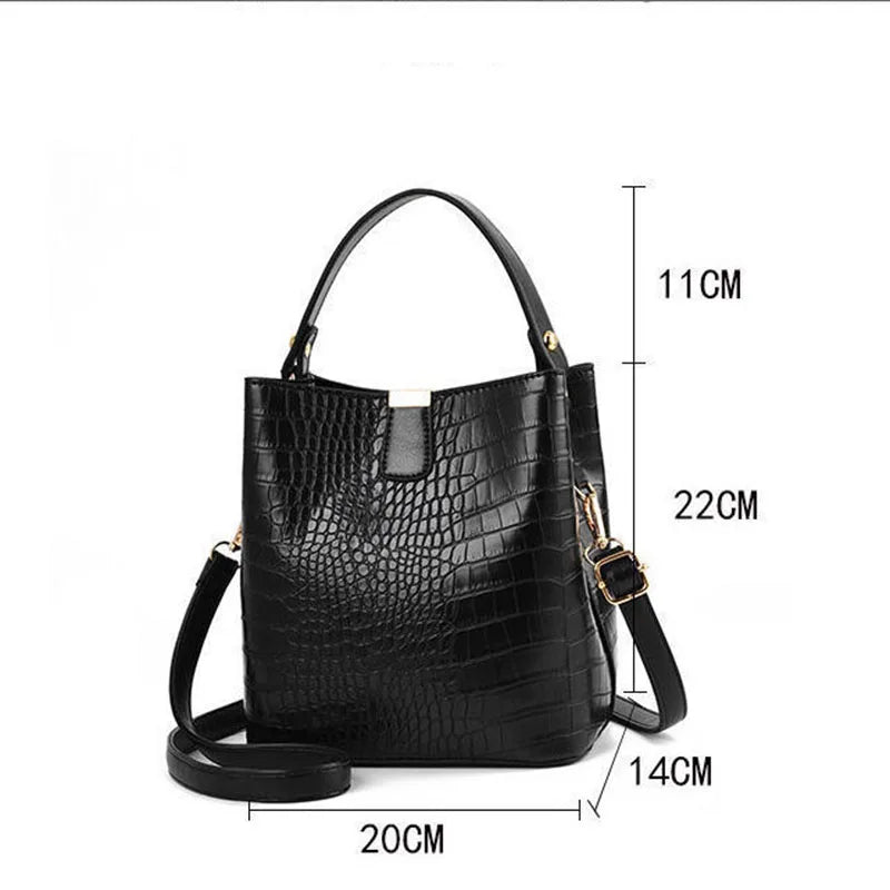 Women Fashion Handheld Shoulder Bag Crocodile Pattern Casual Portable Handbag Textured Leather Crossbody Bucket Bag High Quality