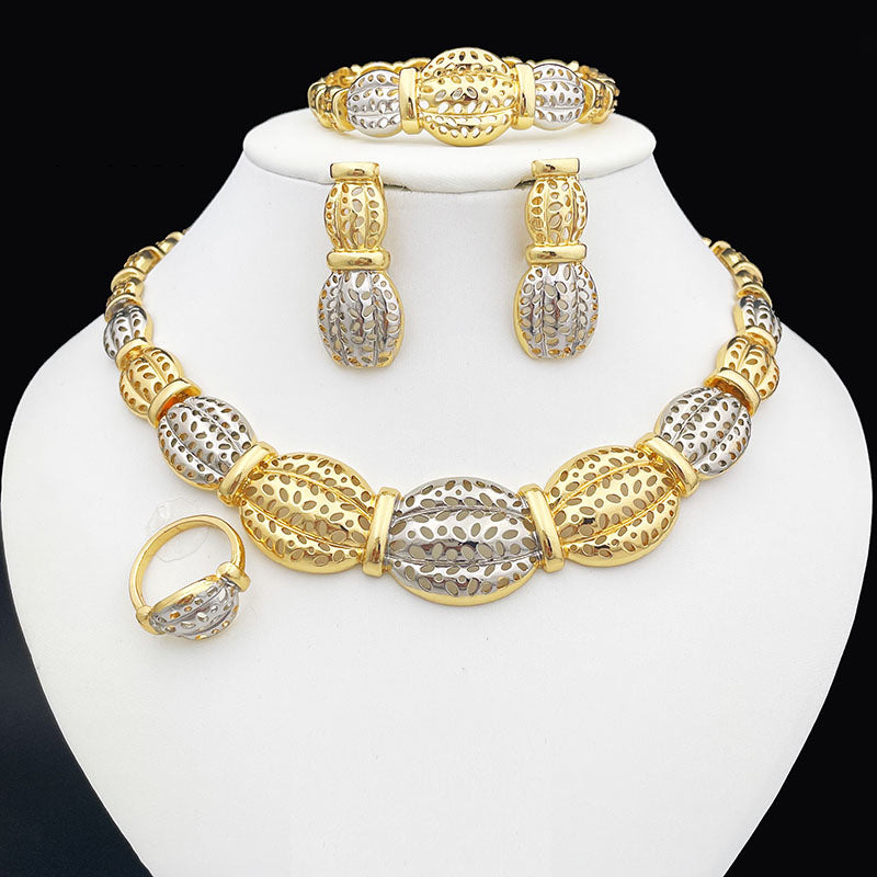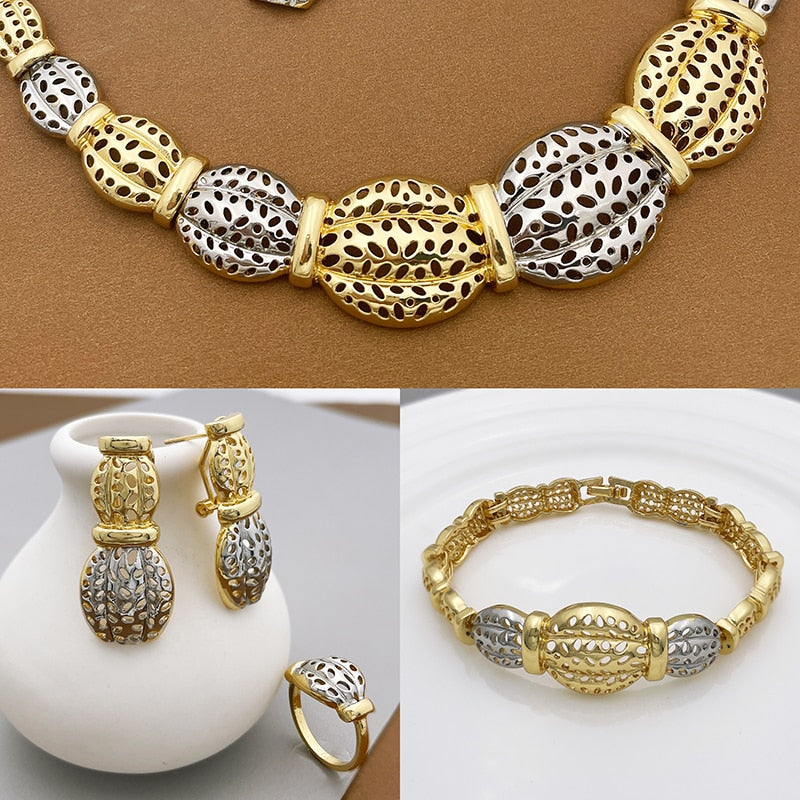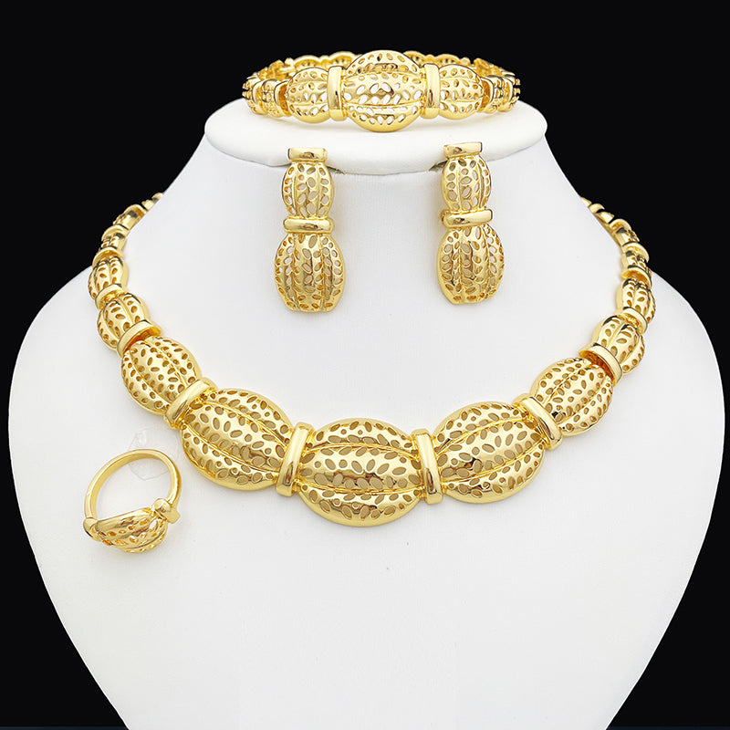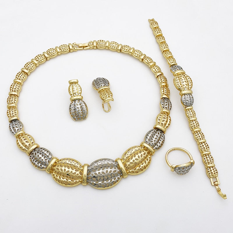 Afraic Jewelry -women's Jewelry Set Necklace Earrings For Women Big Bracelet African Gold Plated Jewelry