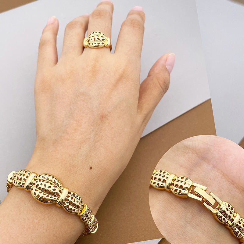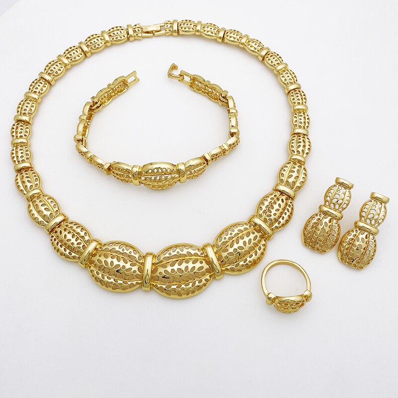 keyword: Newly Dubai Jewelry For Women Grace Wave Pattern Necklace Earrings Bracelet Ring Set