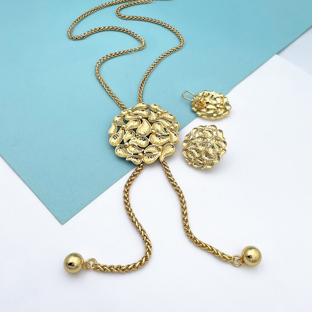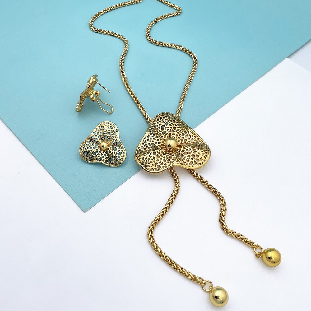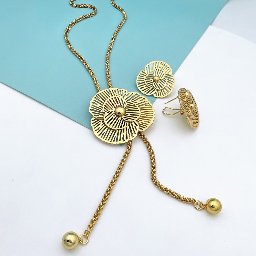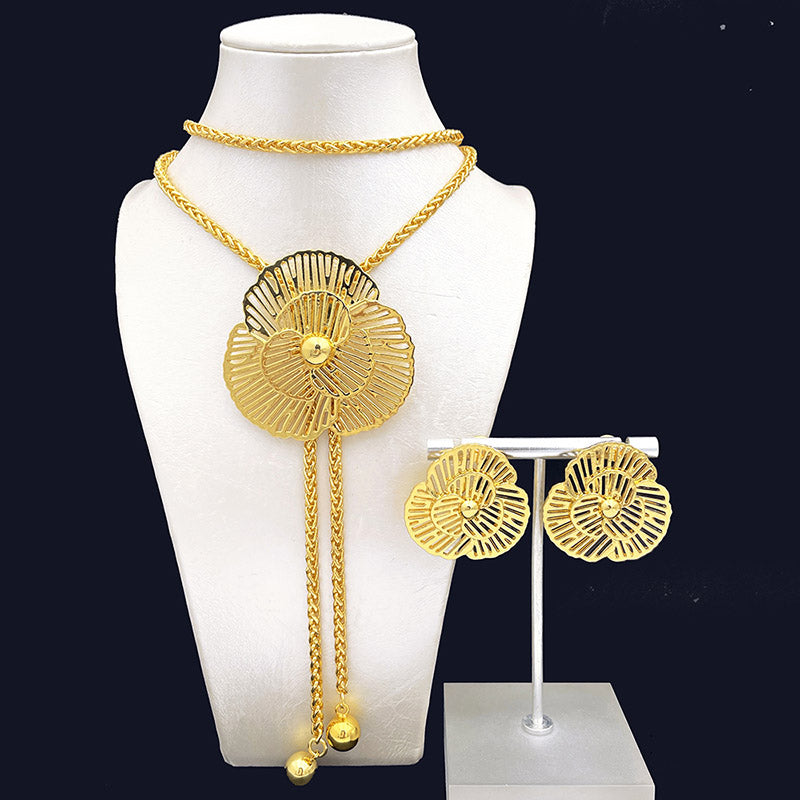 Women Necklace Earrings Set Adjustable Chain Necklace Long Necklace Big Pendant Wedding Party Gift