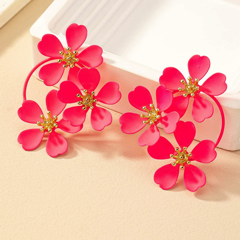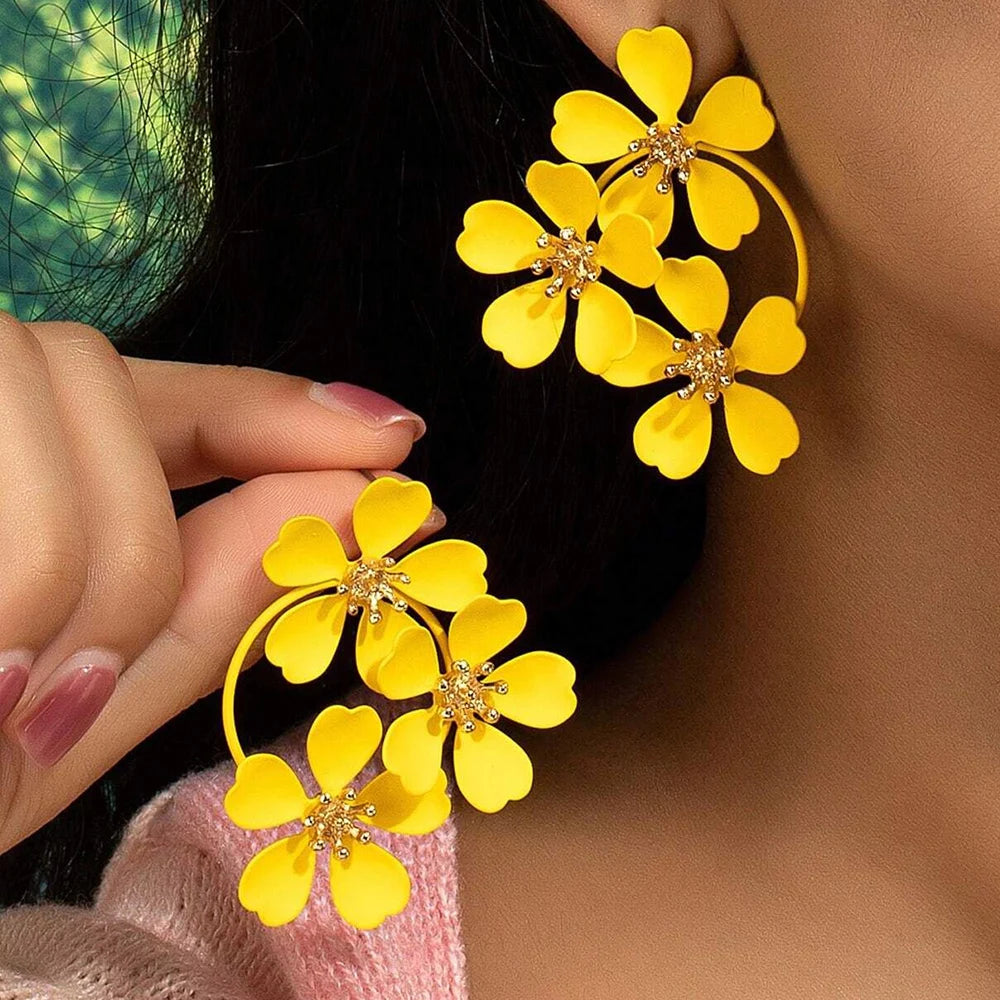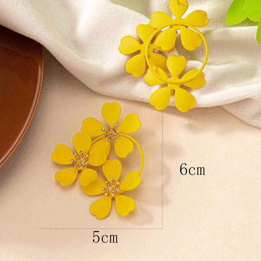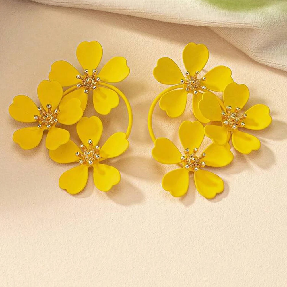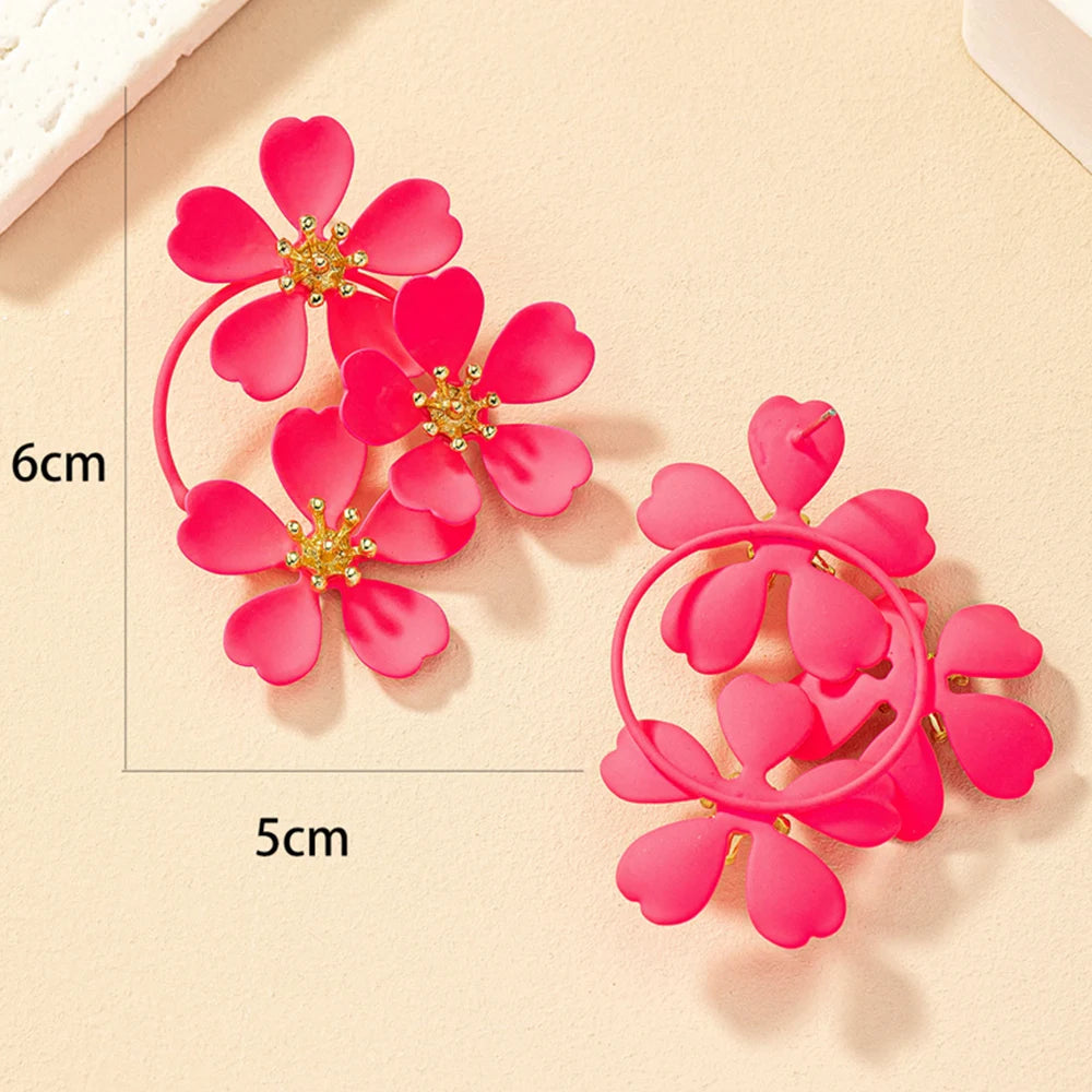Women Neon Pink Color Flowers Earring Stud Yellow Paiting Color Flower Sweet Summer Holiday Girls Post Earrings Trendy Elegant