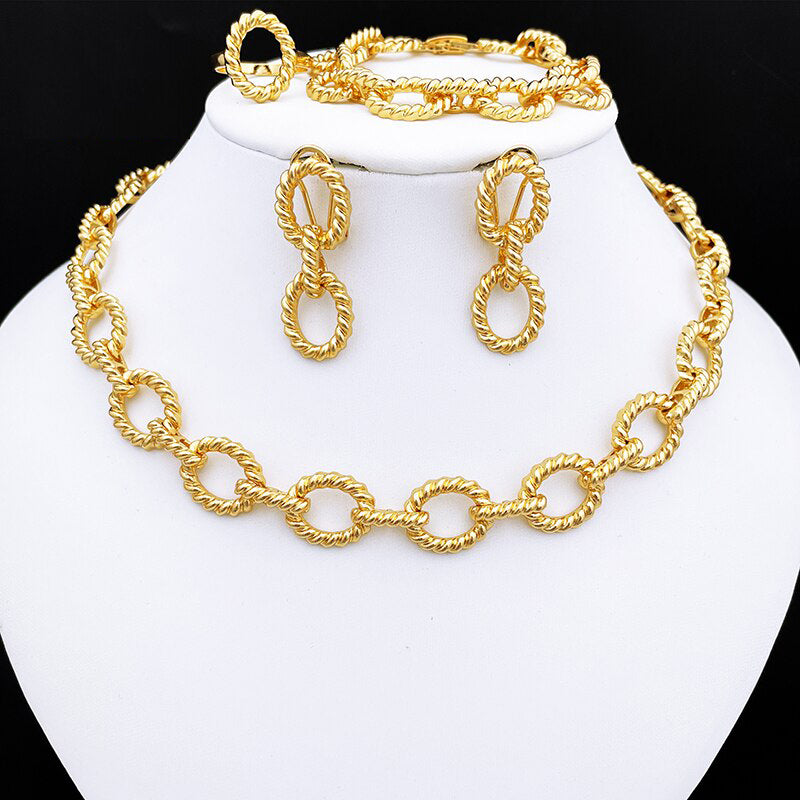 Afraic Jewelry-Women Prom Necklace Earrings Charm Bracelet African Gold Color Jewelry Set Wedding Party Jewelry