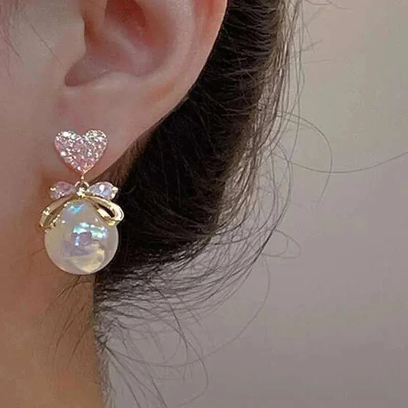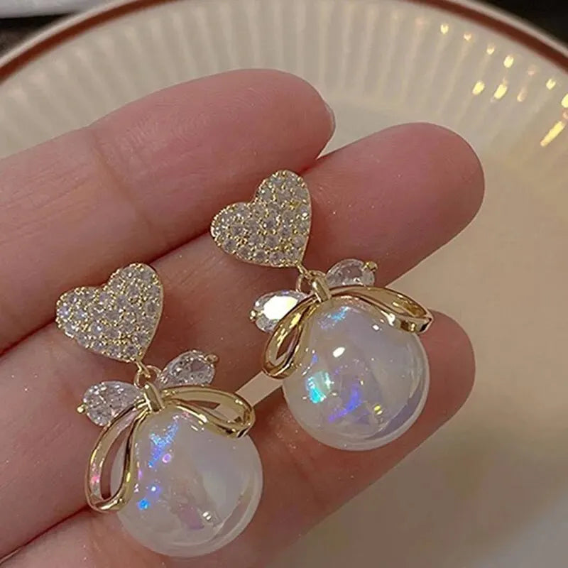 Women Red Heart Shape Resin Board Drop Earrings Turquoise Stone Pearl Bowknot Drop Earring Epoxy Cross Charm Long Tassel Earring