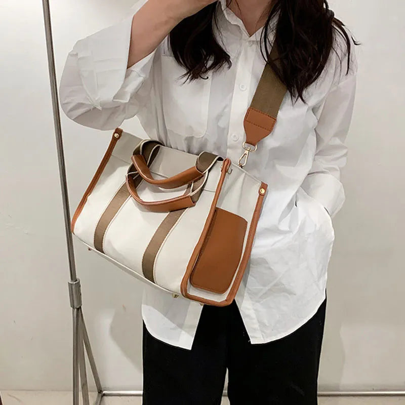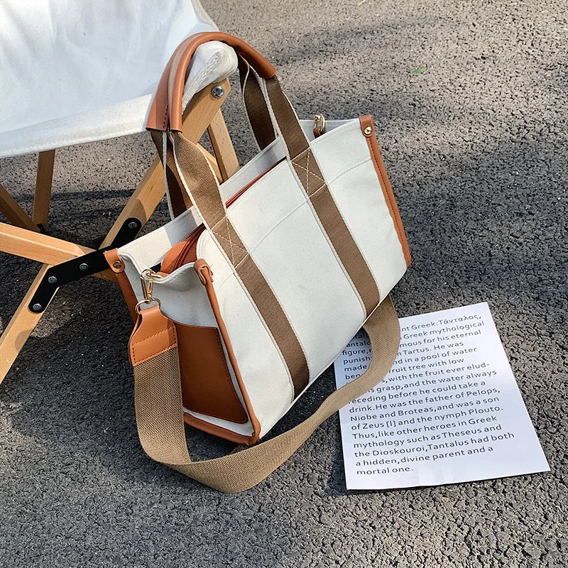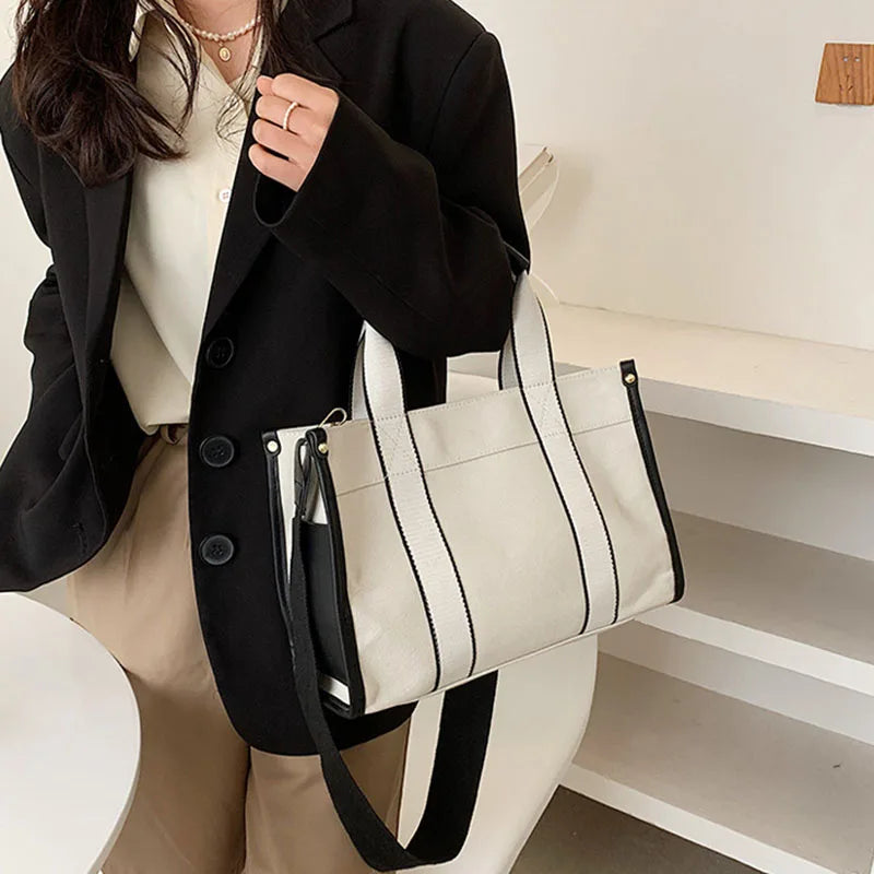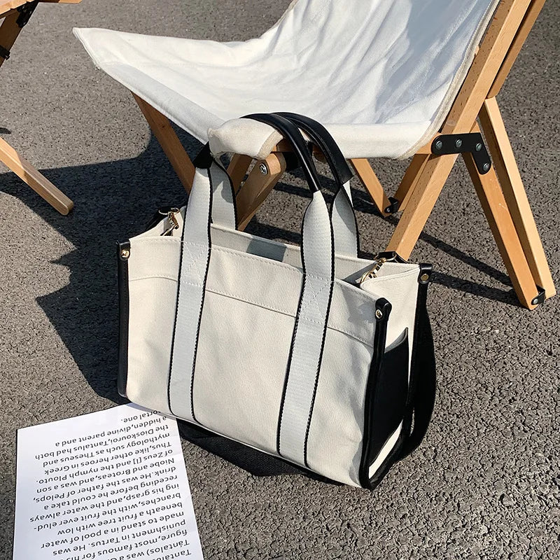 Women's Canvas Simple Tote Handbag Fashion Single-shoulder Messenger Bag Casual Shopping Storage Crossbody Bags Commute Satchel